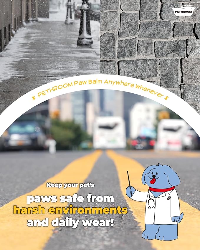 [PETHROOM] Roll-on Paw Balm for Cats & Dogs | Lick-Safe, Super Moisturizing Paw Protector | Soothing Protection from Hot Pavement | Easy to Apply | Quick Drying, Non-Sticky, Non-Staining 2.87 fl.oz.