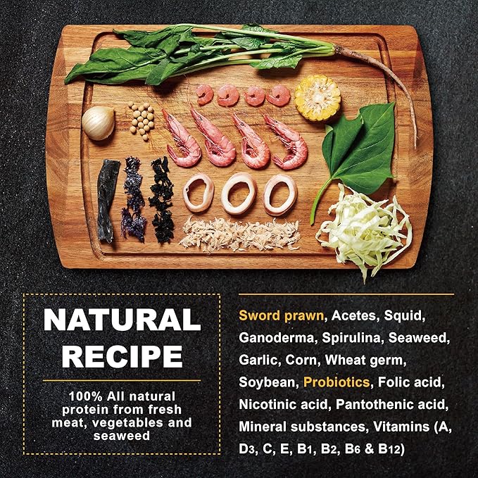 - Superior Quality Ingredient : All natural protein from fresh meat, vegetables and seaweed. No additives, no artificial flavors or coloring, no byproducts and other harmful ingredients. Made from carefully selected ingredients