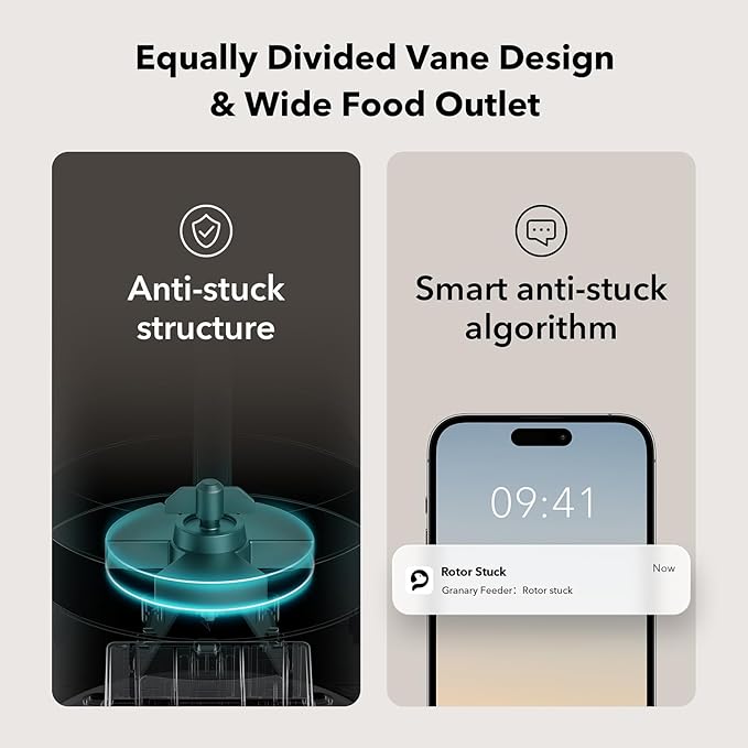 - Never Miss A Meal: Easily schedule up to 10 meals per day with 1-48 portions per meal (1/12 cup each portion), you can easily customize your furry friend's feeding plan and check the feeding records to ensure your cat has been fed on a set schedule by the APP.