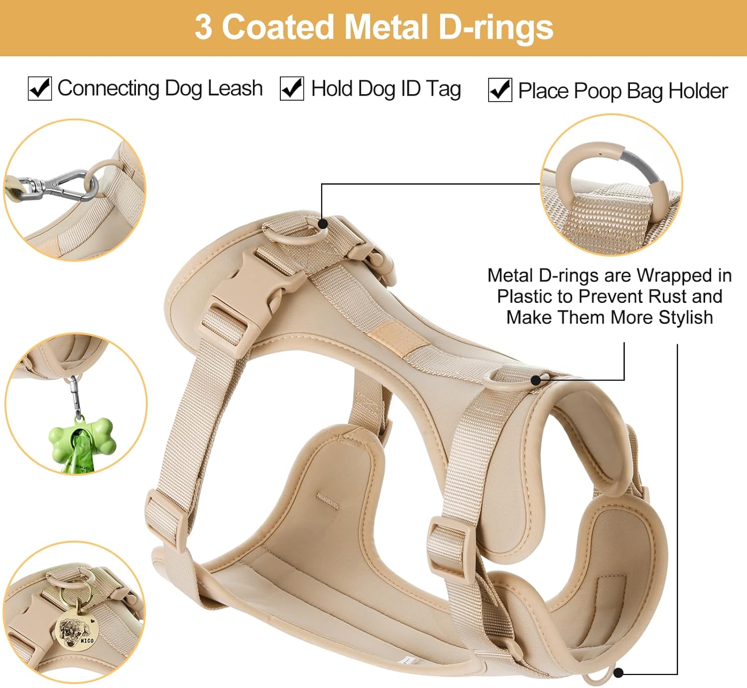 No Pull Lightweight Dog Harness: Adjustable Durable Breathable Mesh Pet Vest Harness with Soft & Comfortable Cushion, for Small Medium Large Dogs (Medium, Sand Color)