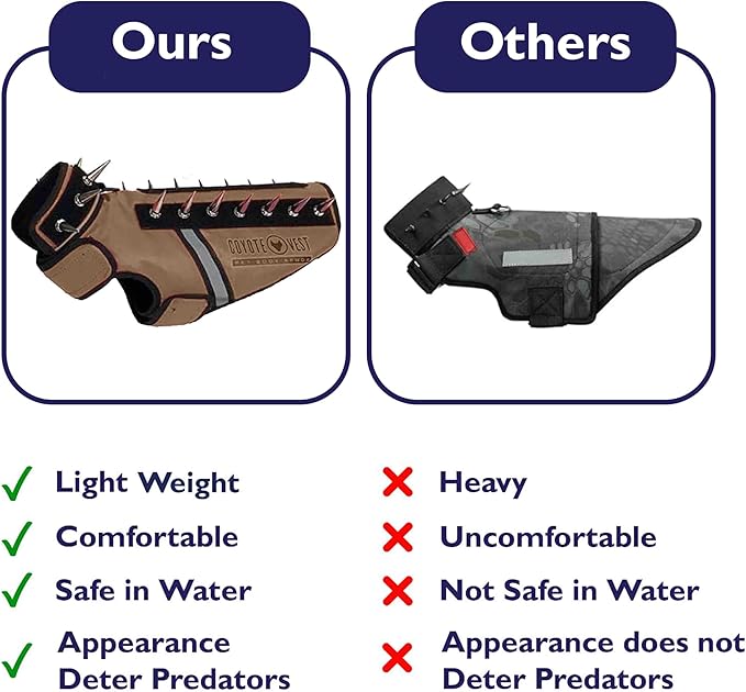 - COYOTE DOG VEST: PLEASE READ SIZING GUIDE BEFORE PURCHASING! Like a CoyoteVest, the purpose of the SpikeVest is to help slow down or prevent a surprise attack and give you enough time to react before serious injury occurs. The main difference is the SpikeVest uses two wide belts with Velcro while the CoyoteVest uses nylon straps with snap buckles.