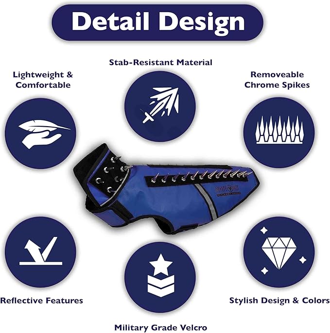 CoyoteVest SpikeVest Dog Harness Vest for Small Dogs, Reflective Dog Vest with Spikes to Shield Your pet from Coyotes, Raptor and Animal Attacks, Anti Hawk Vest, Made in USA(XS-Royal Blue)