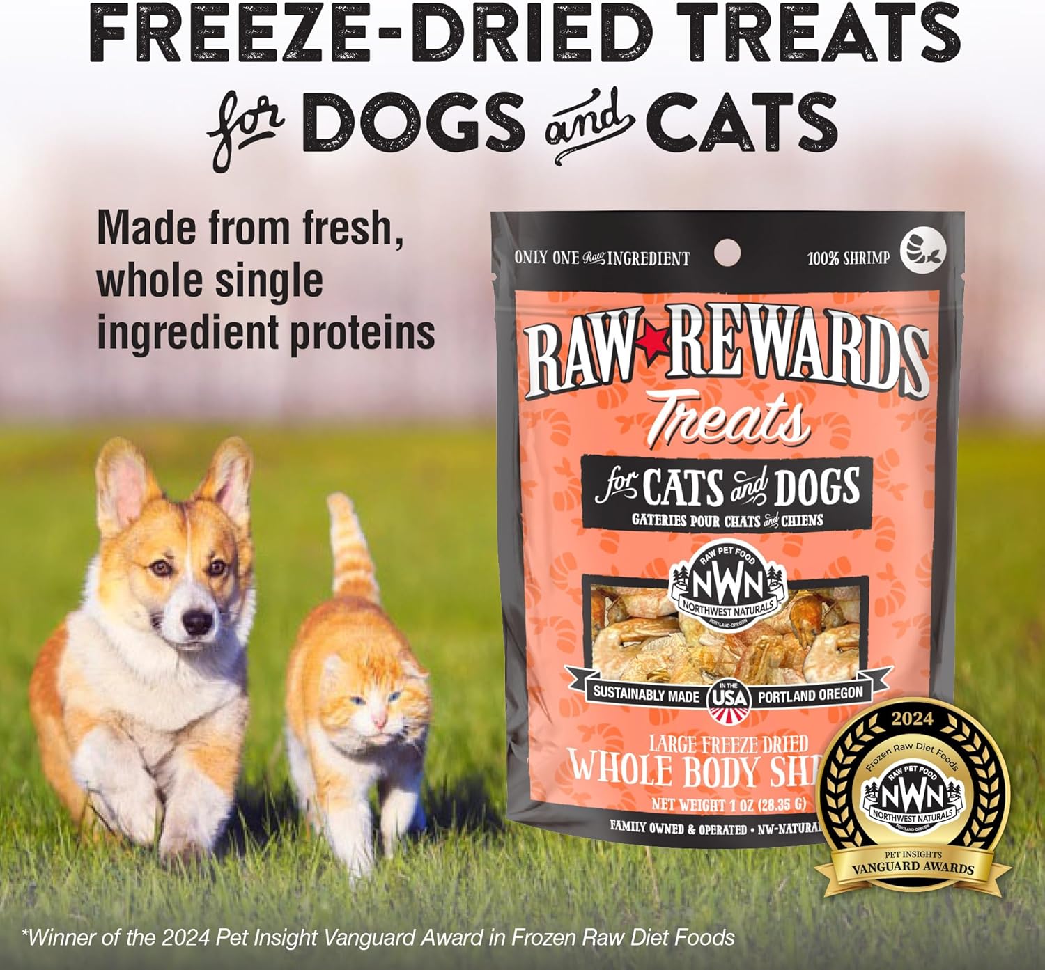 Northwest Naturals Raw Rewards Freeze-Dried Shrimp Treats for Dogs and Cats - Bite-Sized Pieces - Healthy, 1 Ingredient, Human Grade Ingredients, All Natural, Proudly Made in USA, 1 Oz (Pack of 3)