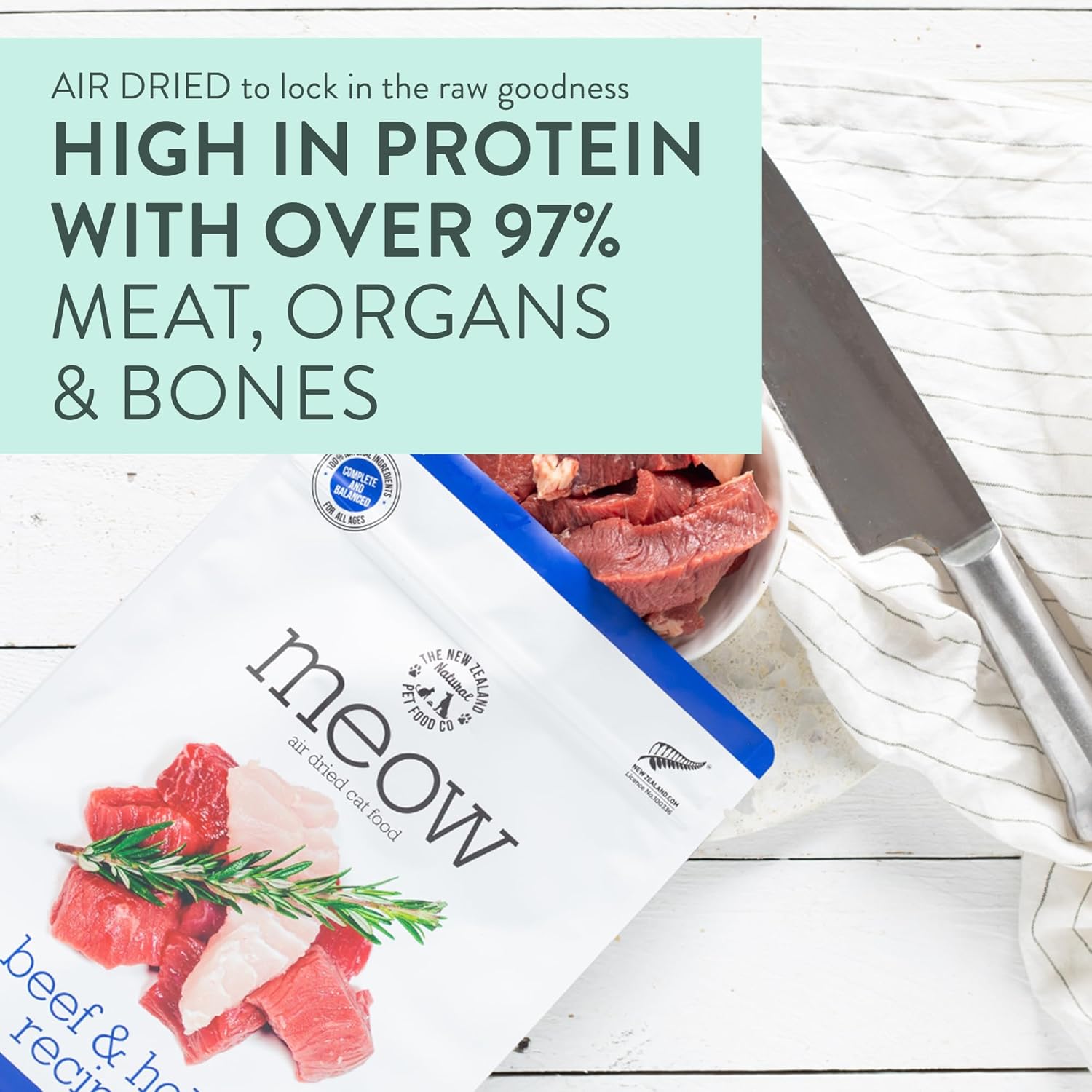 The New Zealand Natural Pet Food Co Meow Air Dried Cat Food - Beef & Hoki Recipe,High Protein Dry Cat Food, Training Treats, Meals & Toppers,3.5oz