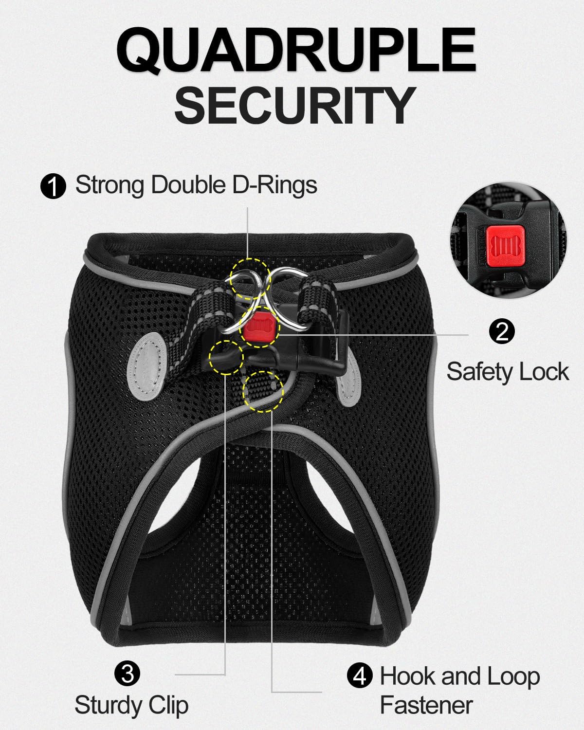 - Reflective Design: This dog harness features 360° highly reflective strips and 4 reflective wide bands for visibility in the dark. Includes a quick-release buckle for added safety