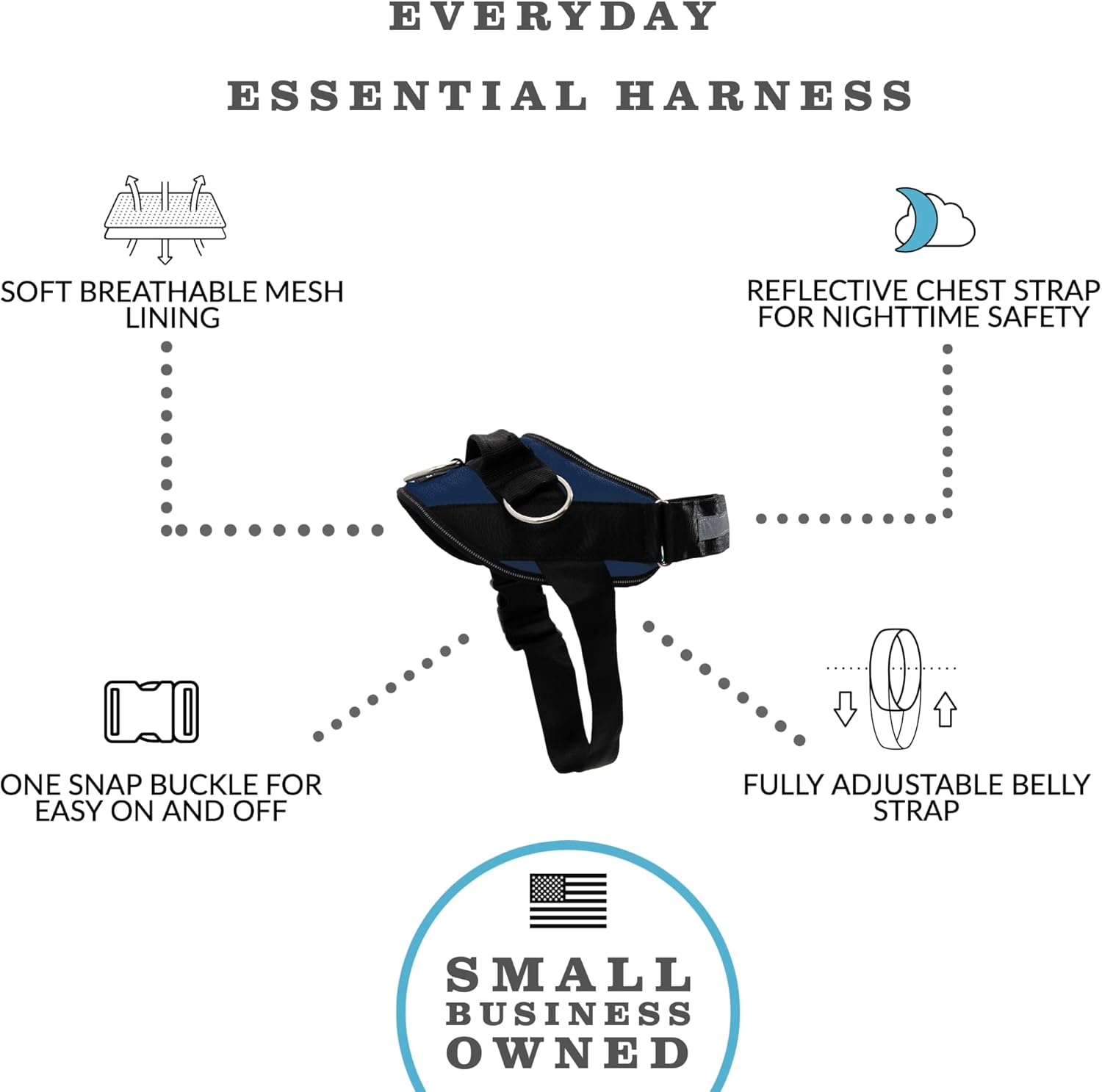 - DURABLE AND COMFORTABLE DESIGN: The Essential harness is made of heavy duty and high quality materials, including 3 reinforced rings for leash attachment points, soft and breathable mesh underside for all day comfort and sturdy nylon handle and nylon straps for long term durability.