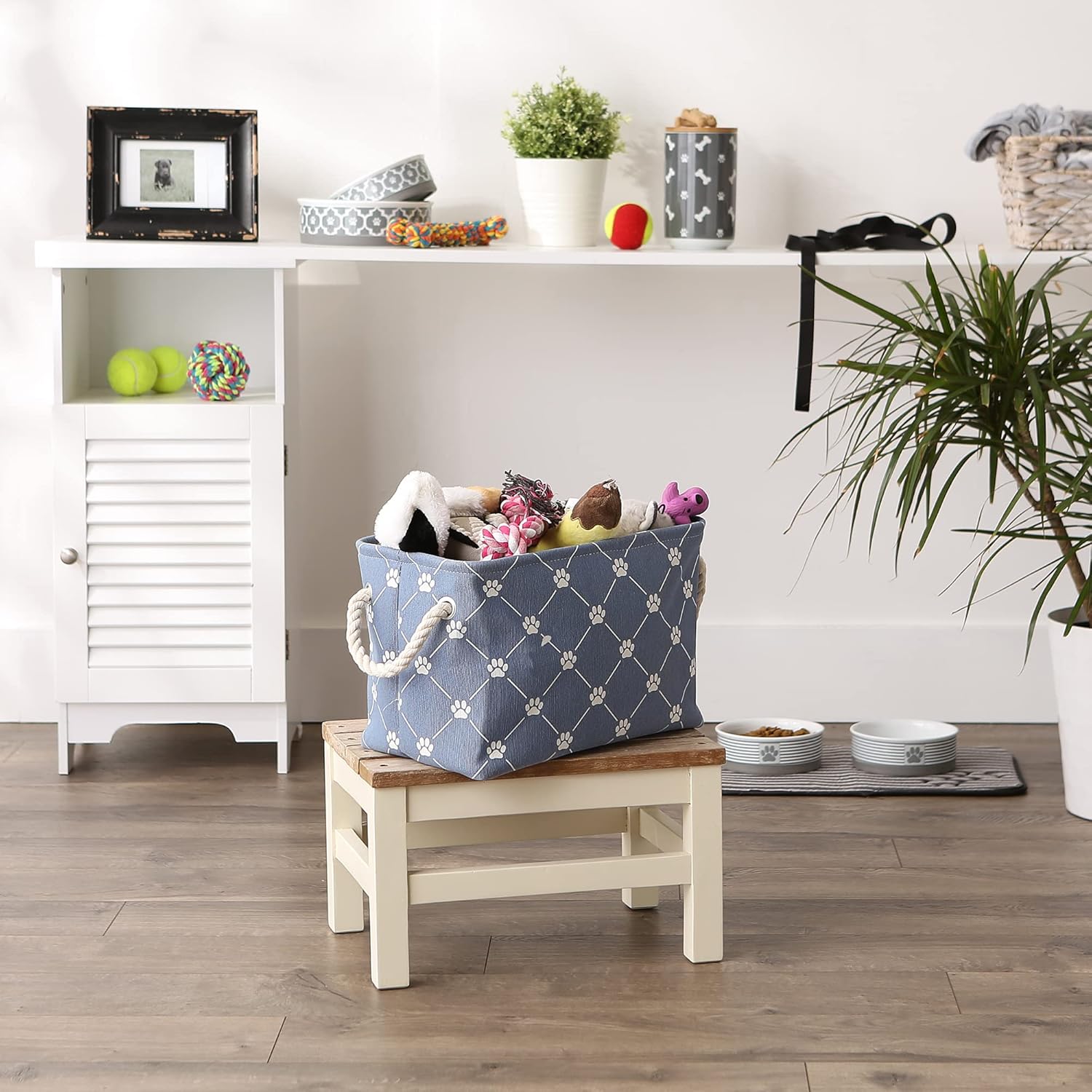 Bone Dry Pet Storage Paw and Bone, Trellis Collection, Small Rectangle, 14x8x9, Stonewash Blue