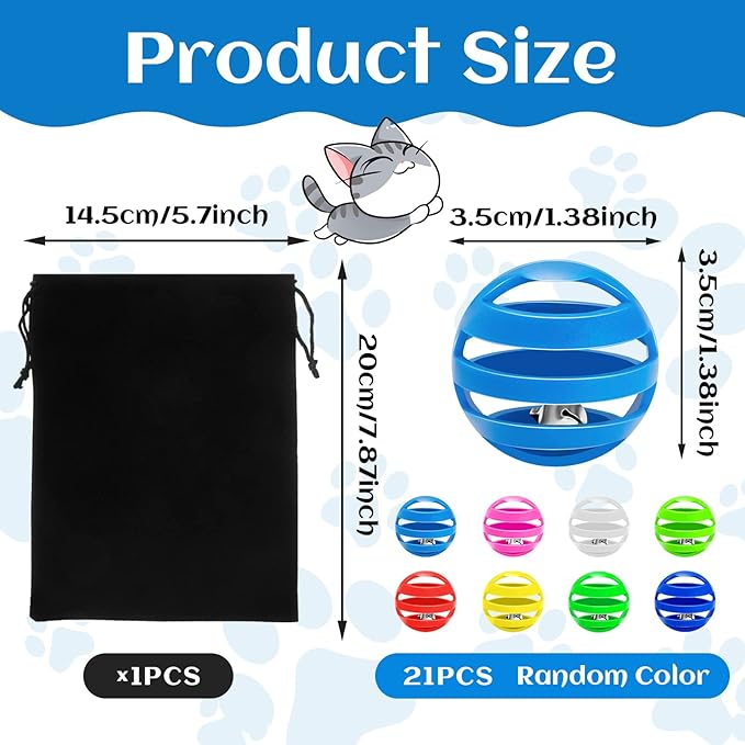 - Sufficient Quantity: you will get 21 pieces of colorful cat balls with bells in random color, the package also contains 1 black plush bag, it was easy to take in; Ample quantity and various colors can meet your pet's playing needs, you also share these toys with your friends who own cats at home