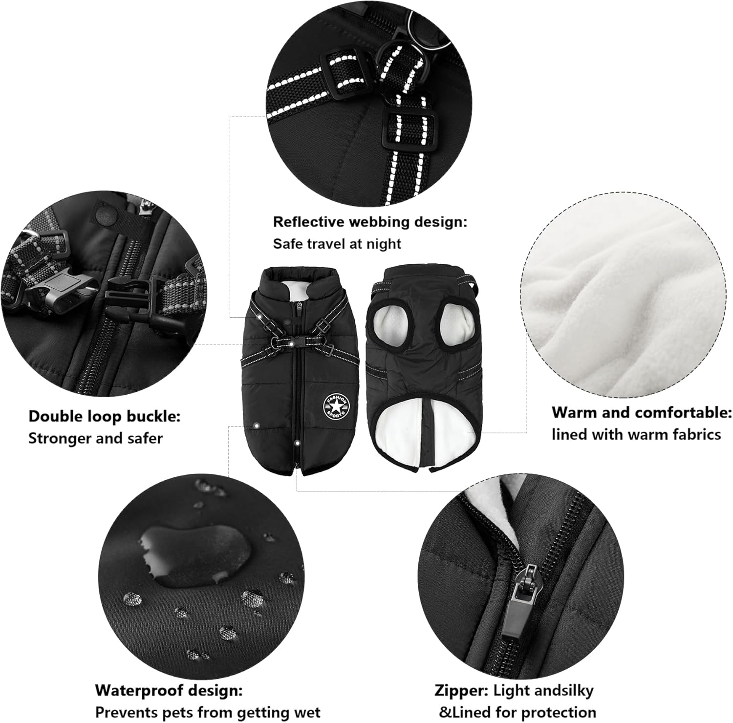 - ❤【Aiboria dog coat】The zipper of the dog jacket has been improved and reinforced to prevent easy loosening and damage; The protective strip on the jacket zipper prevents your dog's fur and skin from being accidentally pinched. The integrated, adjustable shoulder straps are stable and tear-resistant; The D-ring is sturdy and durable and offers higher tensile strength.