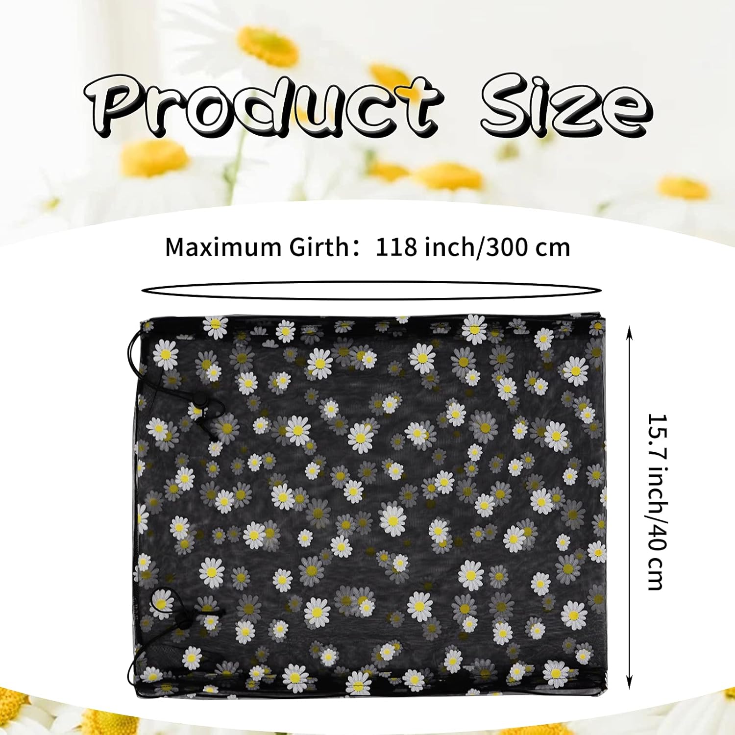 Daoeny Large Bird Cage Cover, Bird Cage Seed Catcher, Adjustable Soft Nylon Mesh Net with Daisy Pattern, Birdcage Cover Skirt Seed Guard for Parrot Parakeet Macaw Round Square Cages (Black)