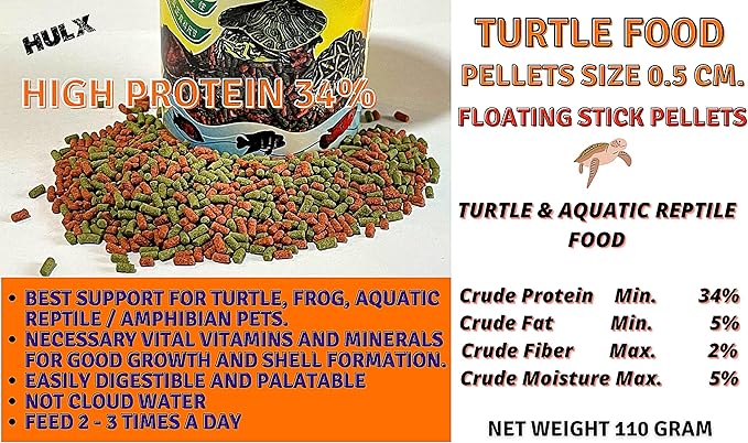 - ๐ข HIGHT QUALITY PROTEIN 34% FOR PROMOTE GROWTH RICH OF VITAMIN CALCIUM & MINERAL TO SUPPORT HEALTHY GROWTH : Grow Faster & High Calcium Formula Is 100% Complete Nutrition Needed For Your Aquatic Turtle, Innovation & Useful For Prevent Healthy Latest Formula Ensuring Every Requirement Of Reptile Nutrition, Promotes Colour, The Food Is Designed To Float, Easy To Digest And Assimilate, Also Accepted Willingly By All Turtles. Ingredients Shrimp & Spirulina Support Color Enhancing & Shiny Skin