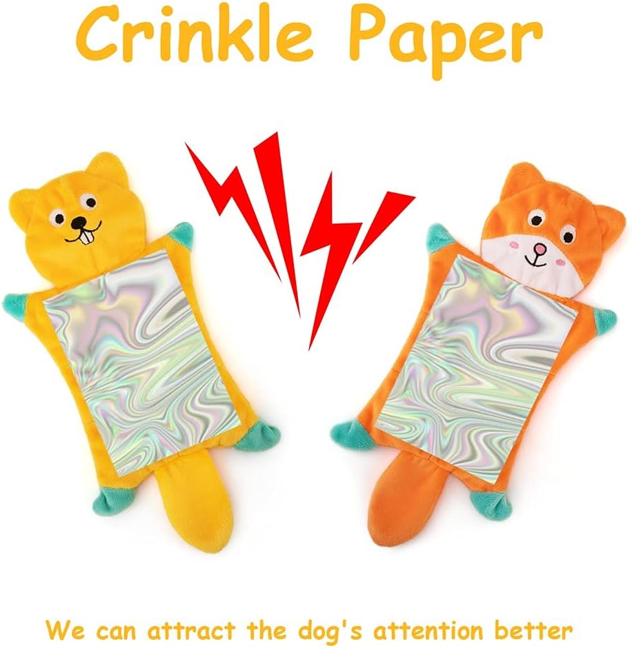 - 【Squeaky Dog Crinkle Toys】Dogs will never refuse toys with squeaker and crinkle papers and even go crazy for it! There are 7 squeakers in each pet toy, 2 of which have crinkle papers. It will absolutely attract your puppy to play fetch, tug-of-war, chase with its friends or itself for a long time. The funny sound makes so much fun and entertainment