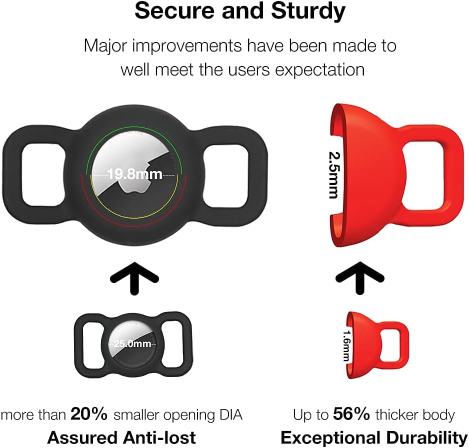 - 【SECURE CASE FOR APPLE TAG】 Compatible with AirTags, it can hold the tag tight. Attach to the collar, the tracker device won’t pop out. Peace of mind to know where your little guy’s whereabouts.