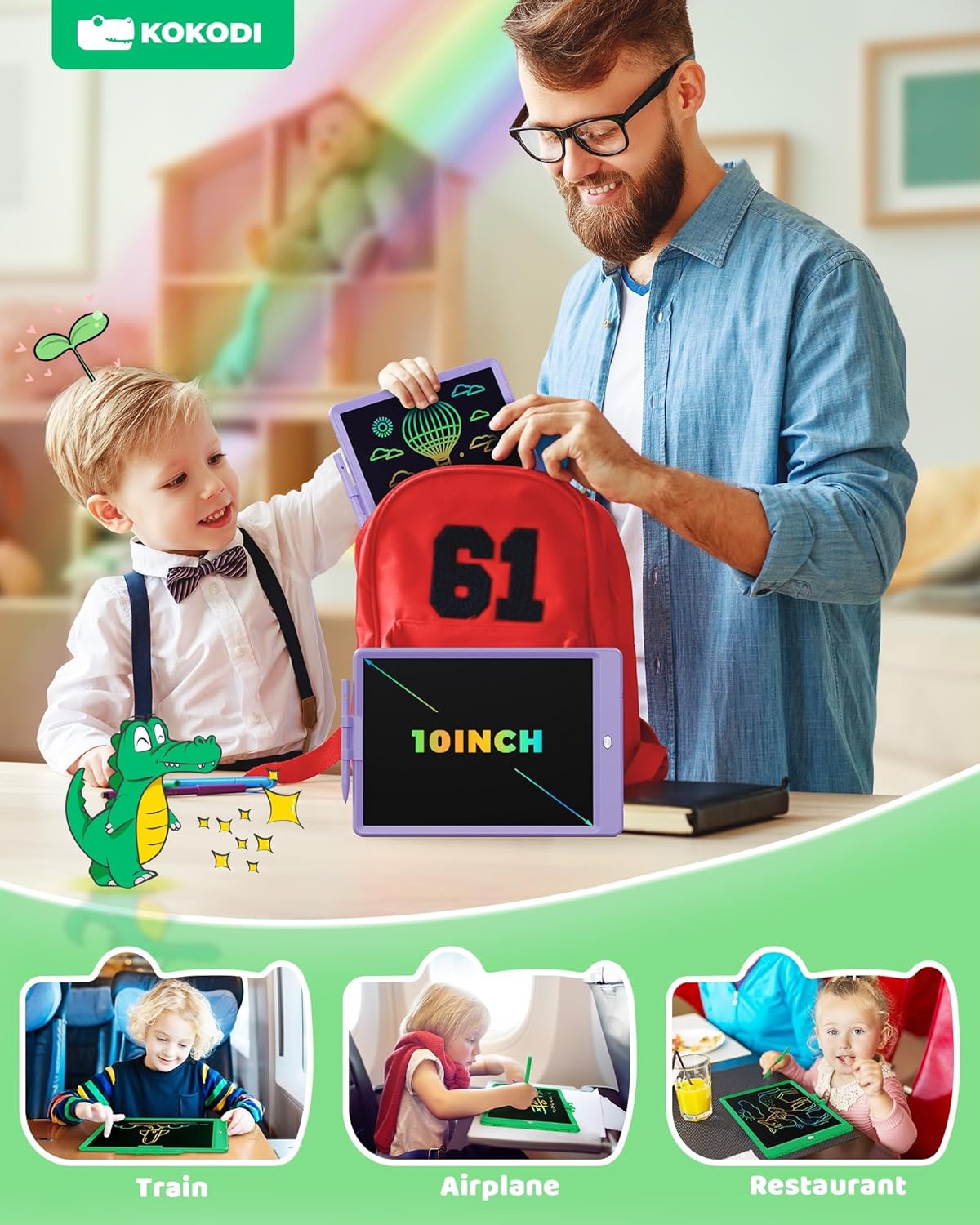 KOKODI LCD Writing Tablet, 10 Inch Colorful Toddler Doodle Board Drawing Tablet, Erasable Reusable Electronic Drawing Pads, Educational and Learning Toy for 3-6 Years Old Boy and Girls(Purple)