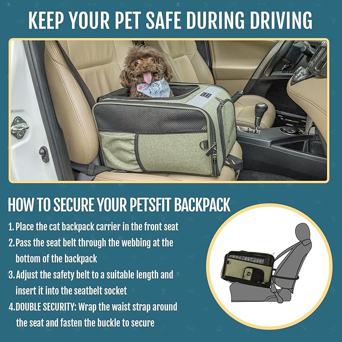 - KEEP YOUR PET SAFE:The cat backpack carrier adopts durable lockable zipper (in opening) and a build-in safety belt which prevent pet from escaping from inside, thickened zipper on the bottom, fine workmanship, durable and not easy to break ,providing better security for your pets
