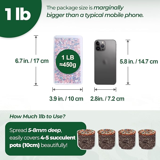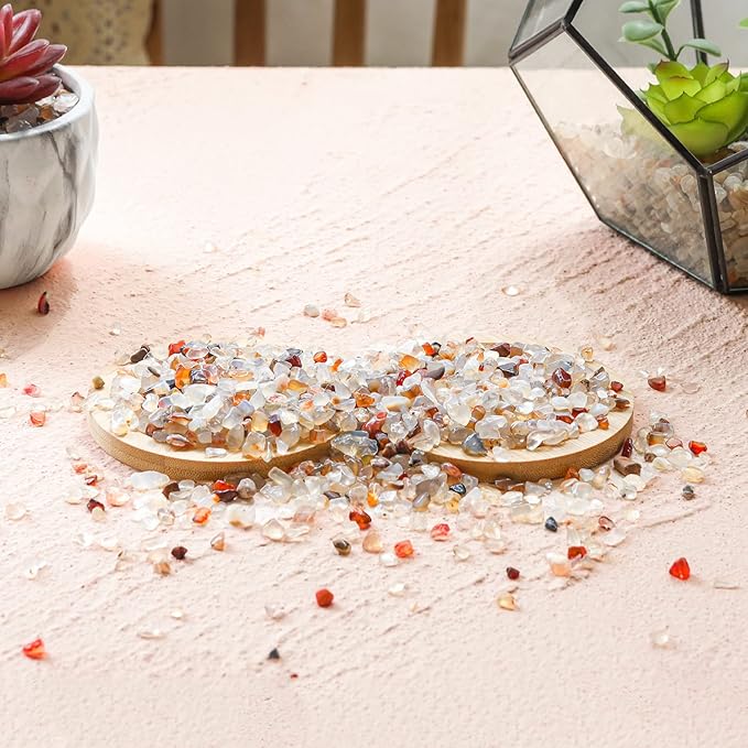 - Natural Stone Chips: Made of selected carnelian with no hole irregular shapes and rich color, 1 pound (450 g) weight and 5-8 mm (0.1"-0.3") in size. As succulent rocks, they are also a good choice for decoration of various other plants