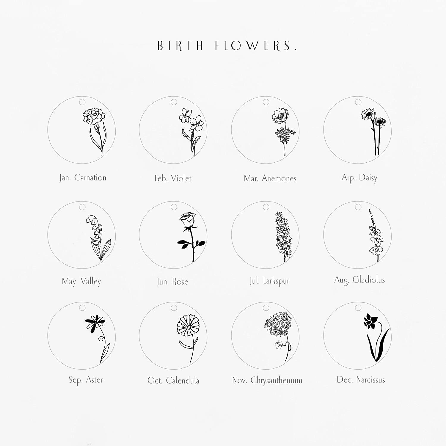 Cats Dogs ID Tags Personalized Engraving Birth Flowers Pattern for Custom Pets Collar Accessories Shiny Brass Copper Medium Round Name Plate