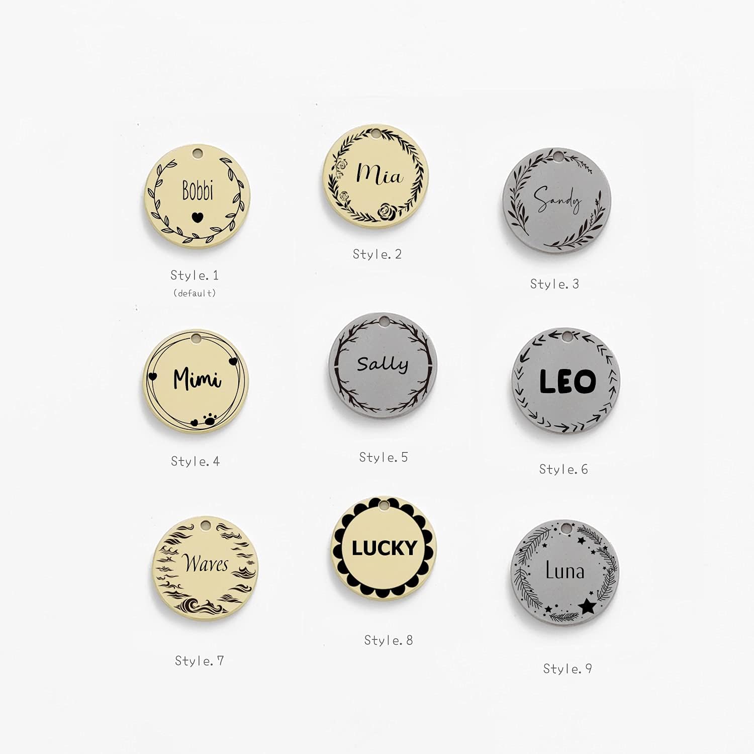 Cat Dog ID Tags Personalized 9 Corolla Styles Flower Wreath to Choose for Extra Small Pets Collar Accessories Matt Stainless Steel Engraved Custom on Both Side