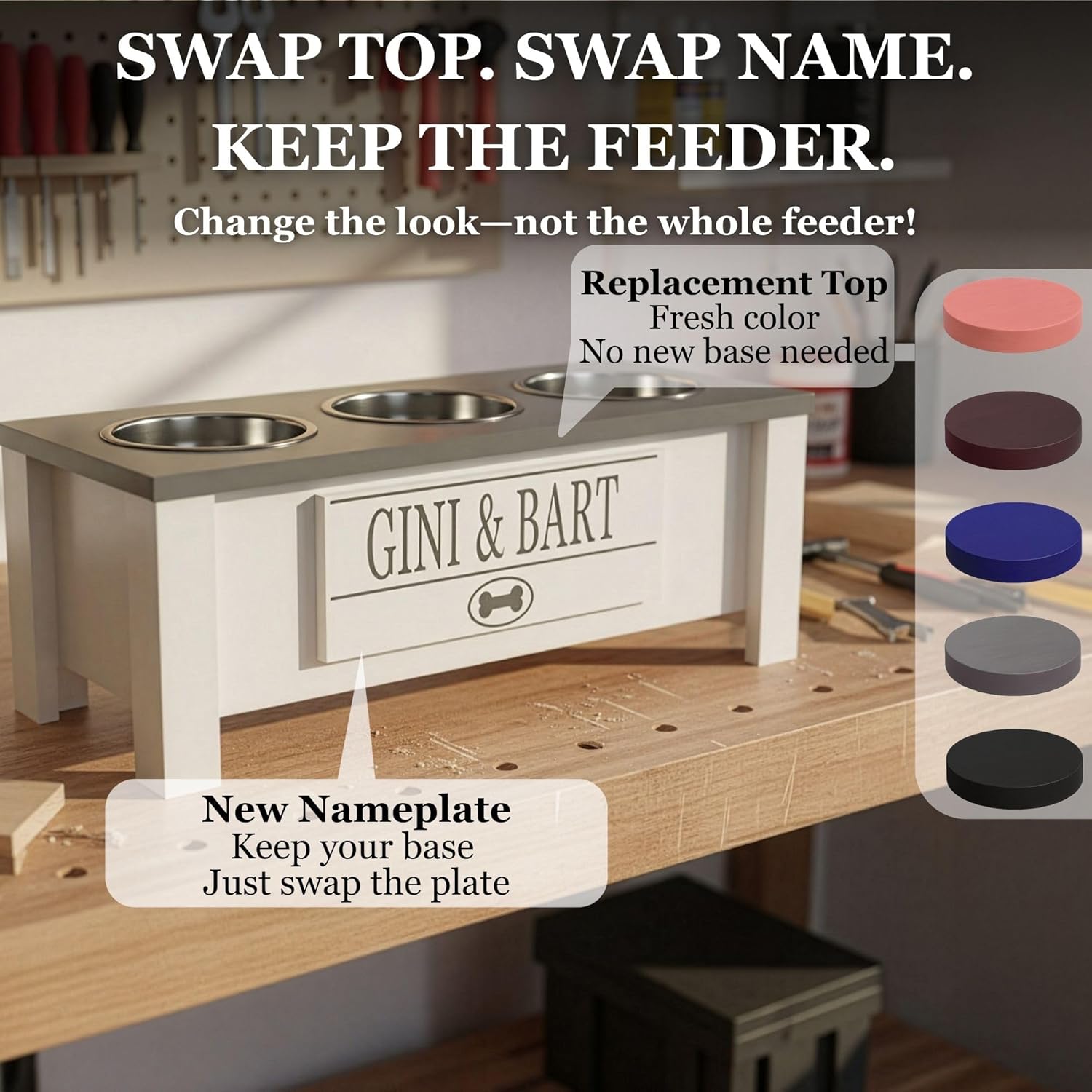 - ๐ฒ Includes 3 Stainless Steel Bowls๐ฒEasy-to-clean, dishwasher-safe, and perfect for your elevated dog bowl stand.