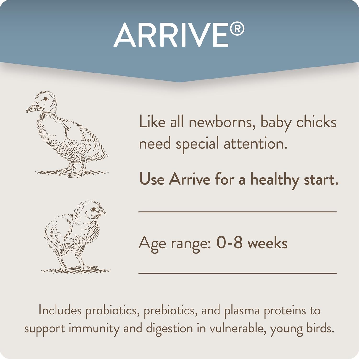 - HIGH QUALITY INGREDIENTS: Arrive contains prebiotics to feed the probiotics and plasma, which improves nutrient absorption and jumpstarts immunity in new chicks.