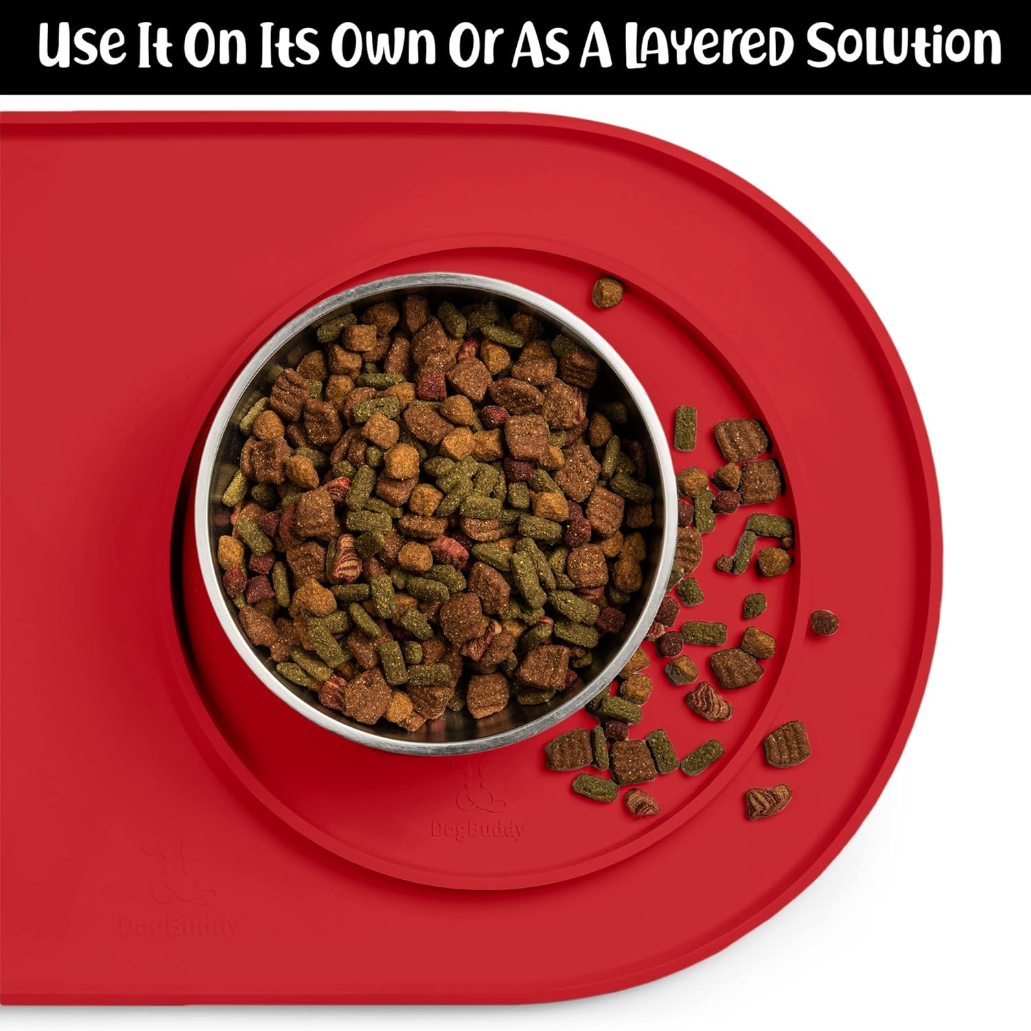 - FOR ALL PETS: DogBuddy is your pet’s buddy! Our food mat can be used for all house pets – dogs, cats, and other small animals. Use this food mat under dog and cat bowls, water fountain, automatic feeder, feeding stations to protect your floors. It is pet supplies must have!