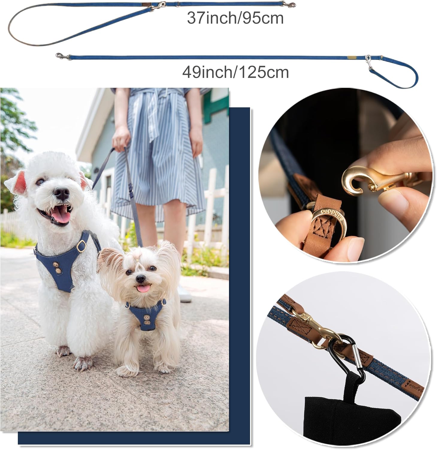 No Pull Small Dog Harness with Multifunction Dog Leash,Lightweight Soft Adjustable No Choke Escape Proof Pet Harness Vest Pet Harness Vest,Denim Blue,S