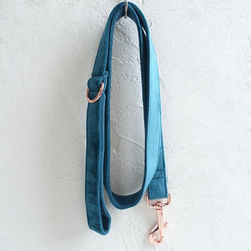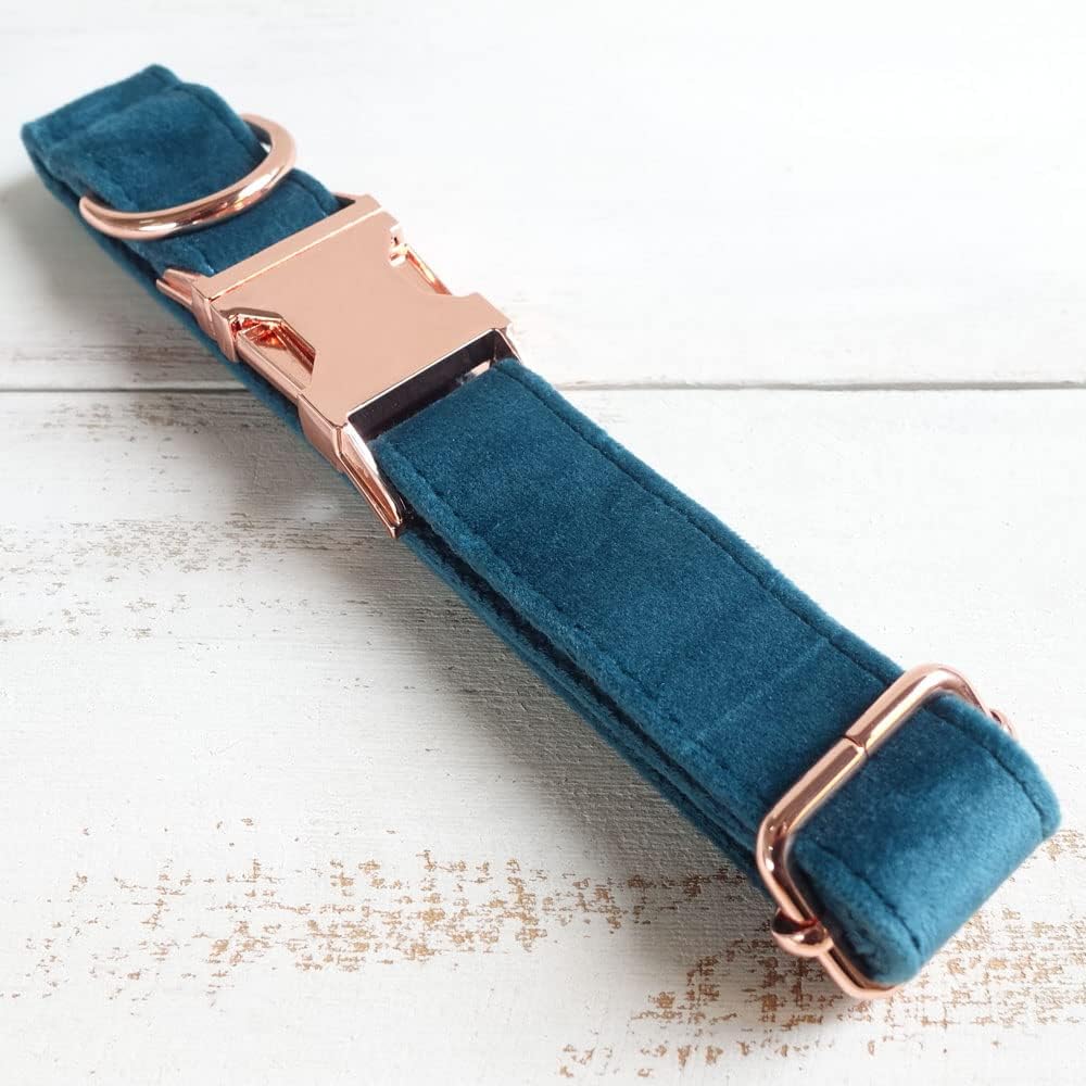 PETDURO Personalized Dog Collar Teal Soft Velvet for Large Medium Small Boy Girl Dogs - Custom Collar with Name Phone Number Engraved on Rose Gold Metal Buckle - Add Leash Bow Set via Customize Now