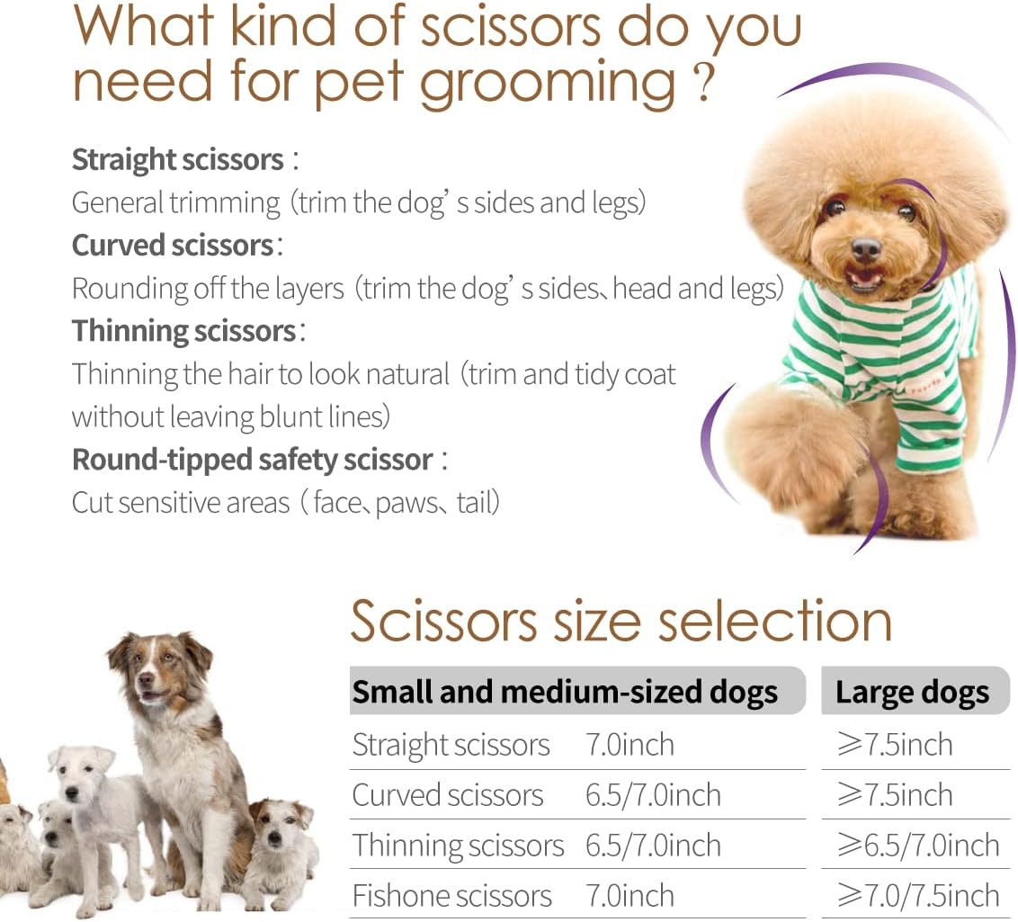 - ๐ถ[100% Satisfaction] Each pair of dog hair scissors for grooming, we go through more than 10 inspection processes to ensure that you get the more satisfactory scissors. If you have any question, please contact us. We offer 100% satisfaction or money back. Invest with no risk.