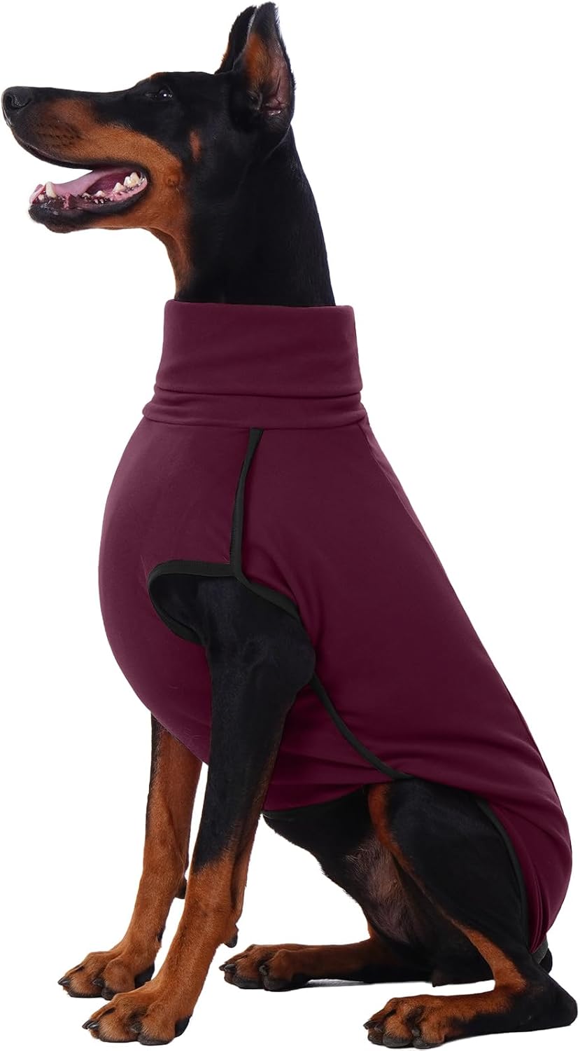 ROZKITCH Dog Shirt for Large Dogs, Pet Windproof Warm Cold Weather Jacket Vest Cozy Jumpsuit Apparel Outfit Clothes for Walking Hiking Travel Sleep Red 2XL