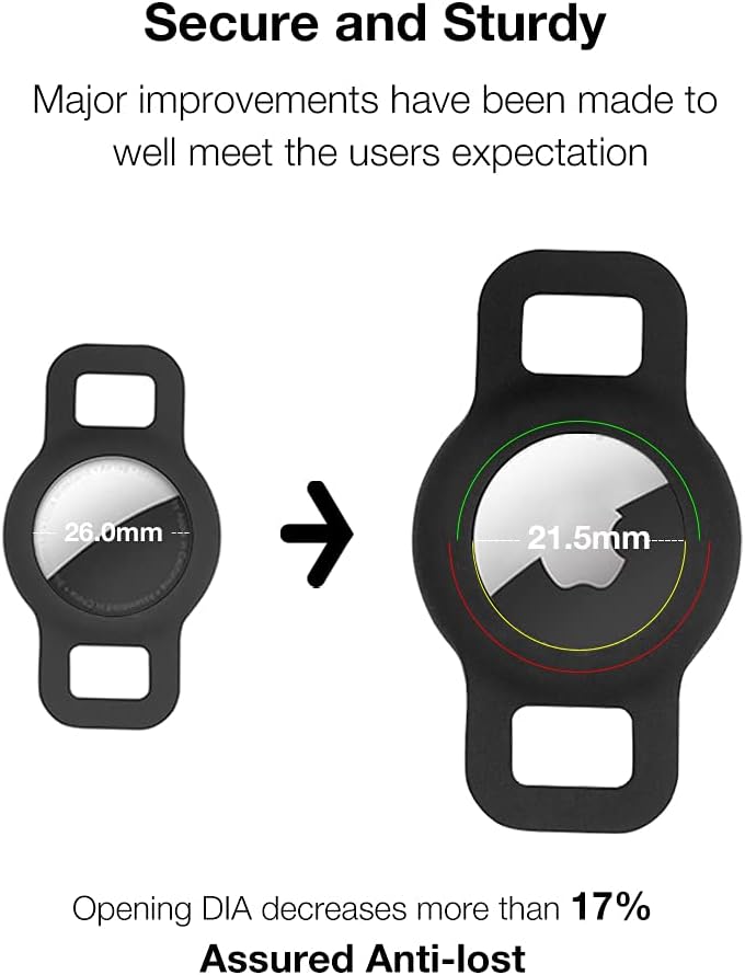 - 【SECURE CASE FOR APPLE TAG】 Compatible with AirTags, it can hold the tag tight. Attach to the collar, the tracker device won’t pop out. Peace of mind to know where your little guy’s whereabouts.