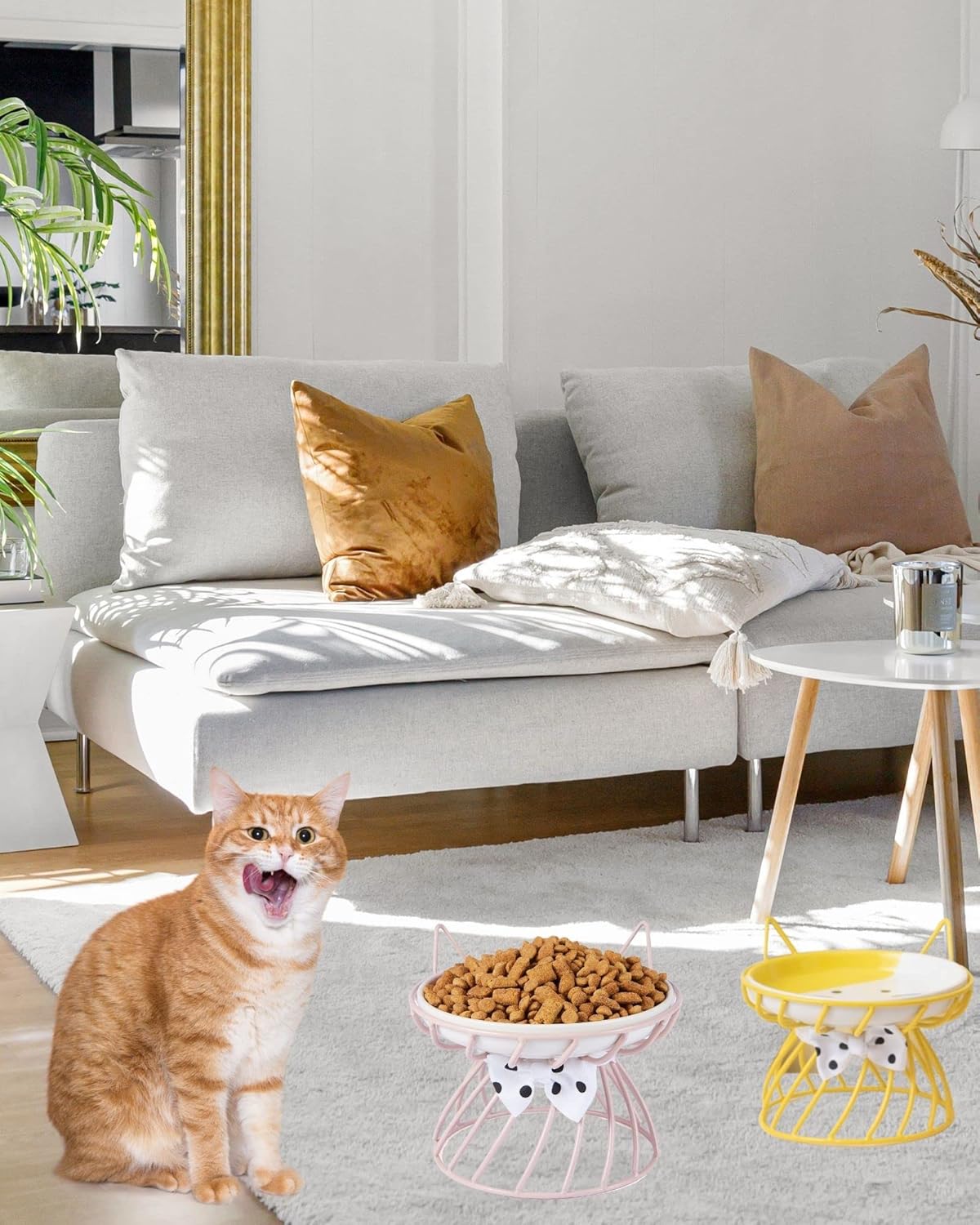 - PROMOTE YOUR CAT'S DIGESTION: The cat food dish with stand make your cat more easier to swallow its food,promote digestion and prevent strain in the neck for kittens suffering from arthritis