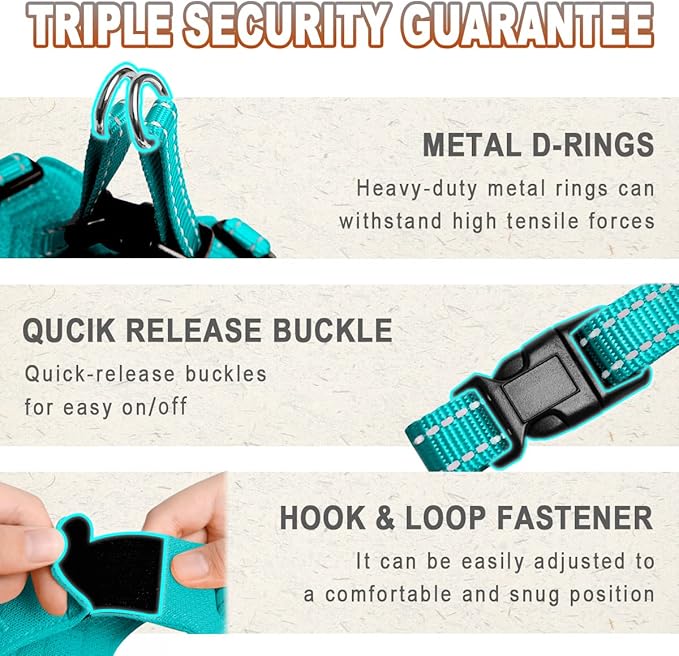 - Safety Guarantee :3 layers of security,the Hook and loop panel on the back works with a buckle and two D rings to keep your pet secure. 3M Reflective ensure him is highly visible and safe at night.