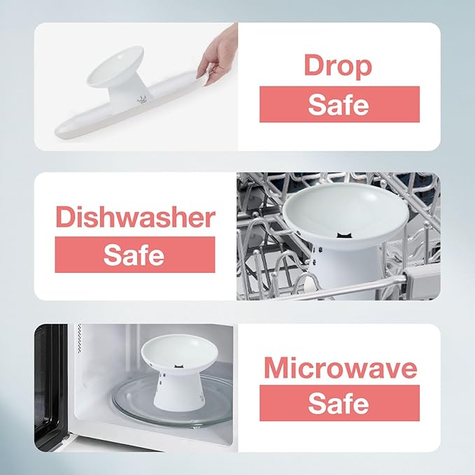 - Safe, Durable & Easy to Clean: Made from high-quality porcelain, free from lead and cadmium; meets strict US, EU and Japanese safety standards; microwave and dishwasher-safe porcelain ceramic cat bowl.