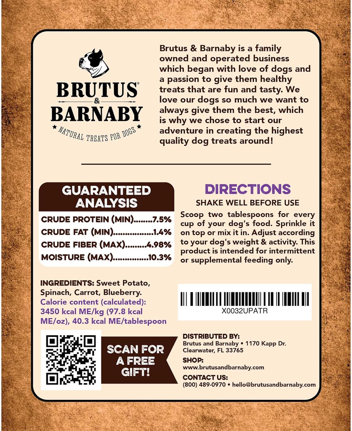 - Brutus & Barnaby stands behind our products, we promise that you and your dog will love our treats or we will take them back no questions asked. If you are dissatisfied and your order page doesn’t allow returns, please reach out to us and we will help you.