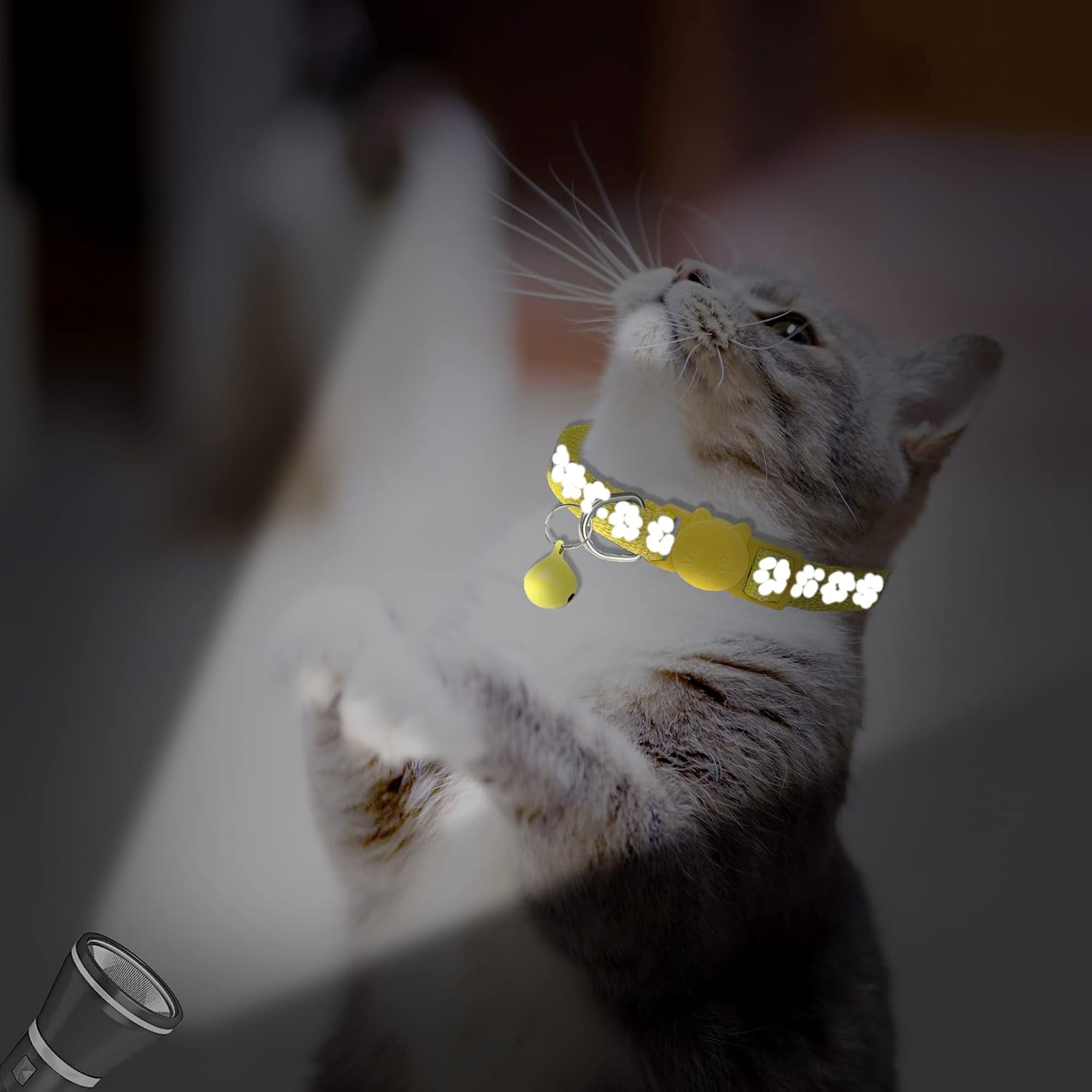 BANMODER 2 Pack Reflective Cat Collar Breakaway with Bell,Personalized Kitten Collars,Adjustable Safety Buckle Collar for Male Cats Girls & Boys (Yellow)