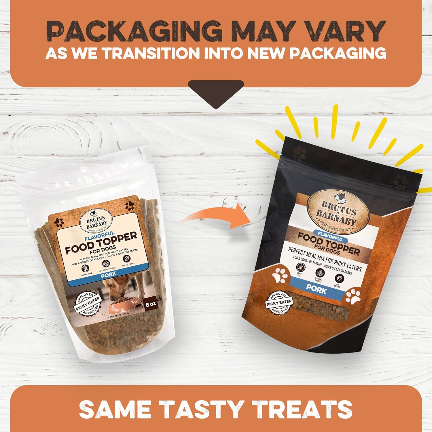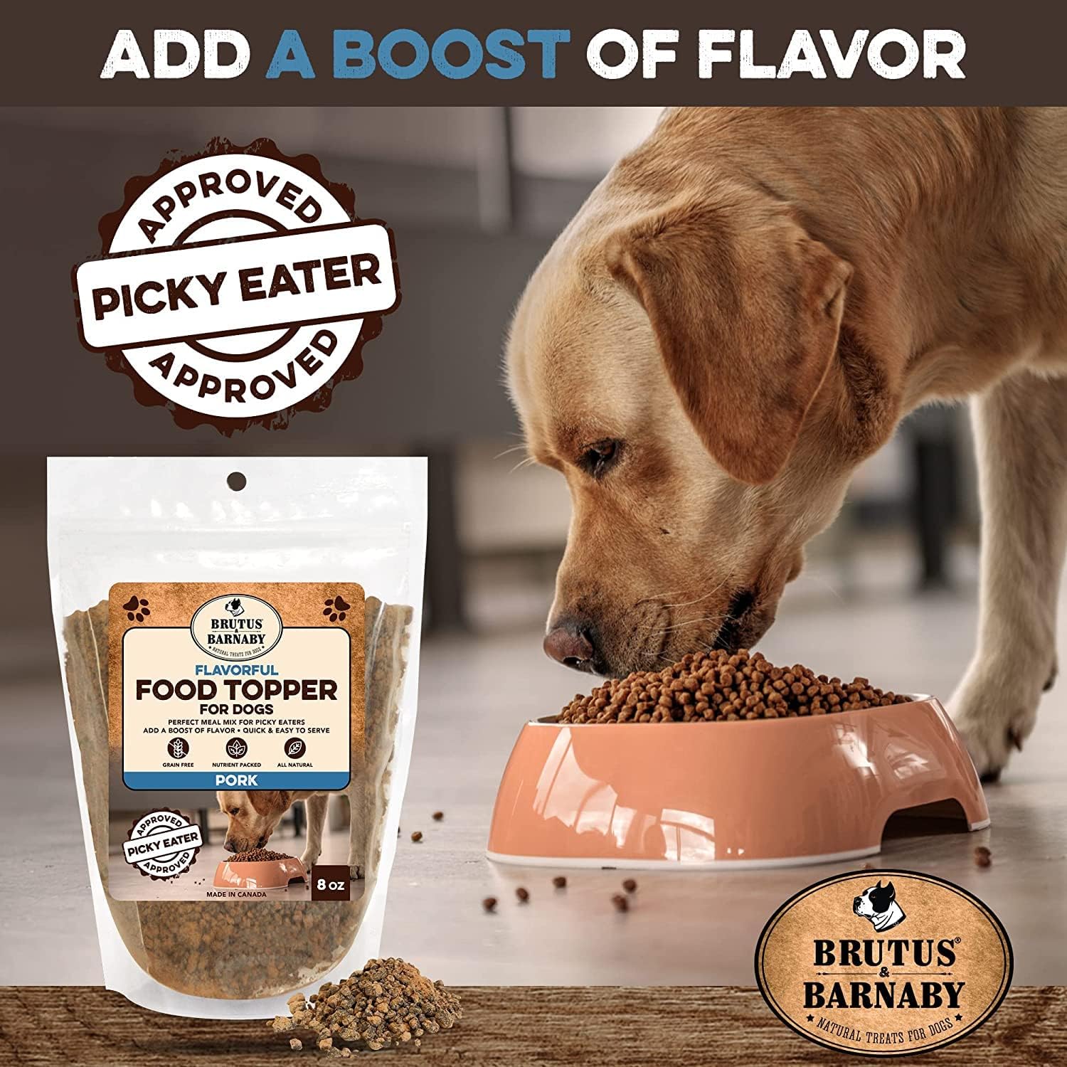 BRUTUS & BARNABY Dog Food Topper - Pork - Enhance Your Dogs Kibble with This Bacon Flavor Packed Mix - Sprinkle On Dog Food Flavoring for Picky Eaters - Just One Single Ingredient