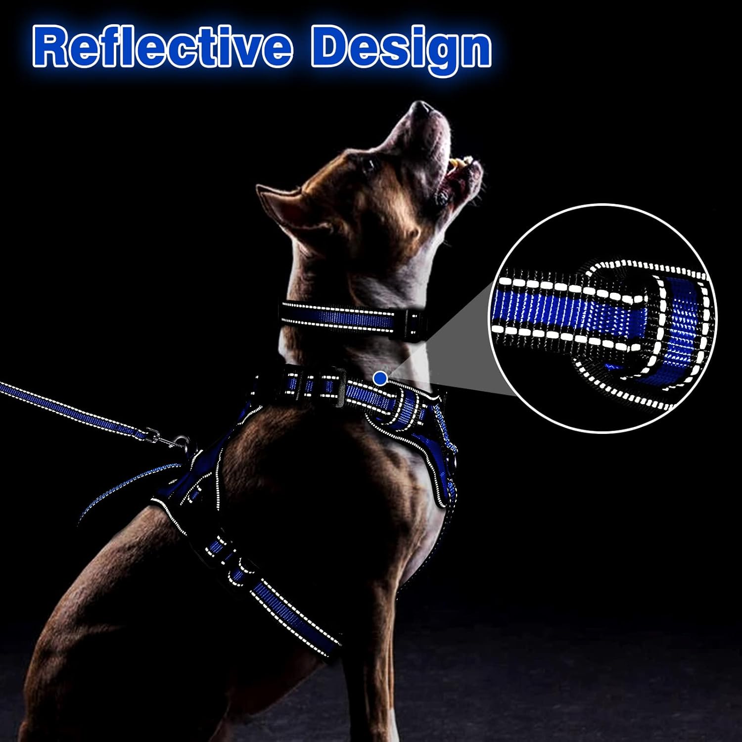 WINSEE Pet Harness Collar and Leash Set, All-in-one Reflective Dog Harness No Pull with Adjustable Buckles for Puppies, Small, Medium, Large, and Extra-Large Dogs (Small, Dark Blue)