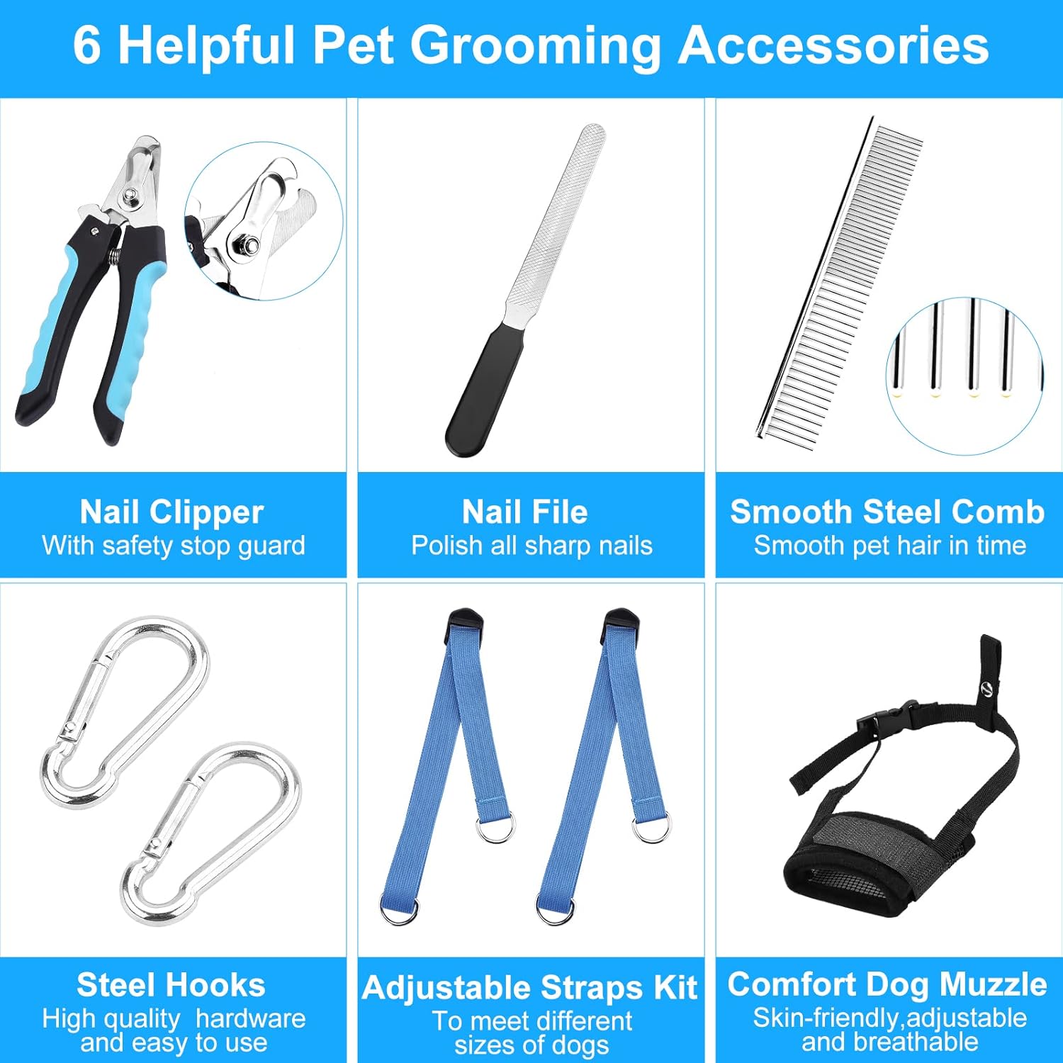 Dog Grooming Hammock, Pet Grooming Harness for Dogs&Cats, Multi Hammock Restraint Bag with Adjustable Grooming Loop/Stainless D-Hooks/Nail Clippers/Trimmer/Nail File for Pet Nail Trimming, Care (M)