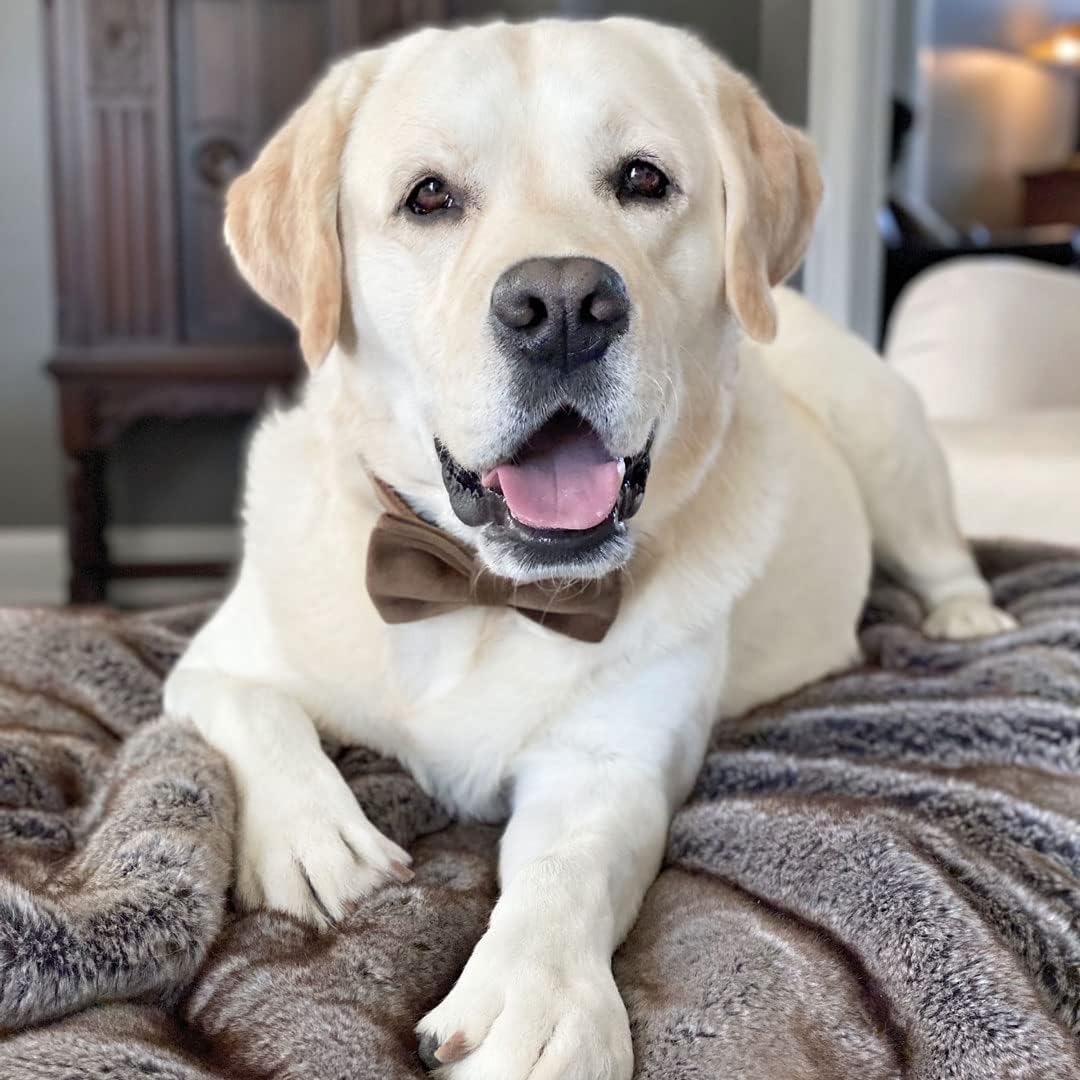 PETDURO Custom Dog Collar Personalized with Name Engraved Quick Release Gold Metal Buckle for Large Medium Small Girl Dogs - Dog Leash and Bow Tie Available - Soft Comfy Velvet (Brown G, L)