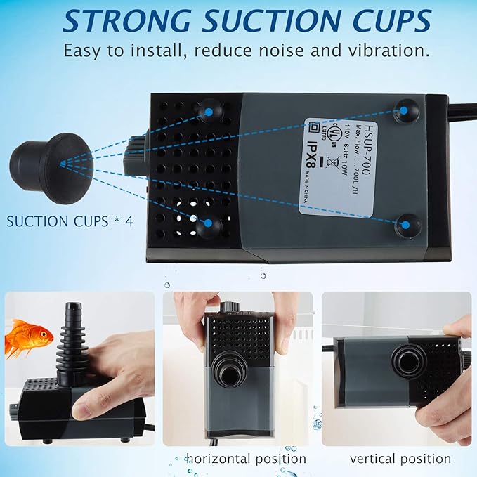 WaterRebirth HSUP700F Versatile Submersible Pump - Fountain Jets for Ponds, Fish Tanks, Water Gardens - Aquarium & Pond Pump (700L/H)