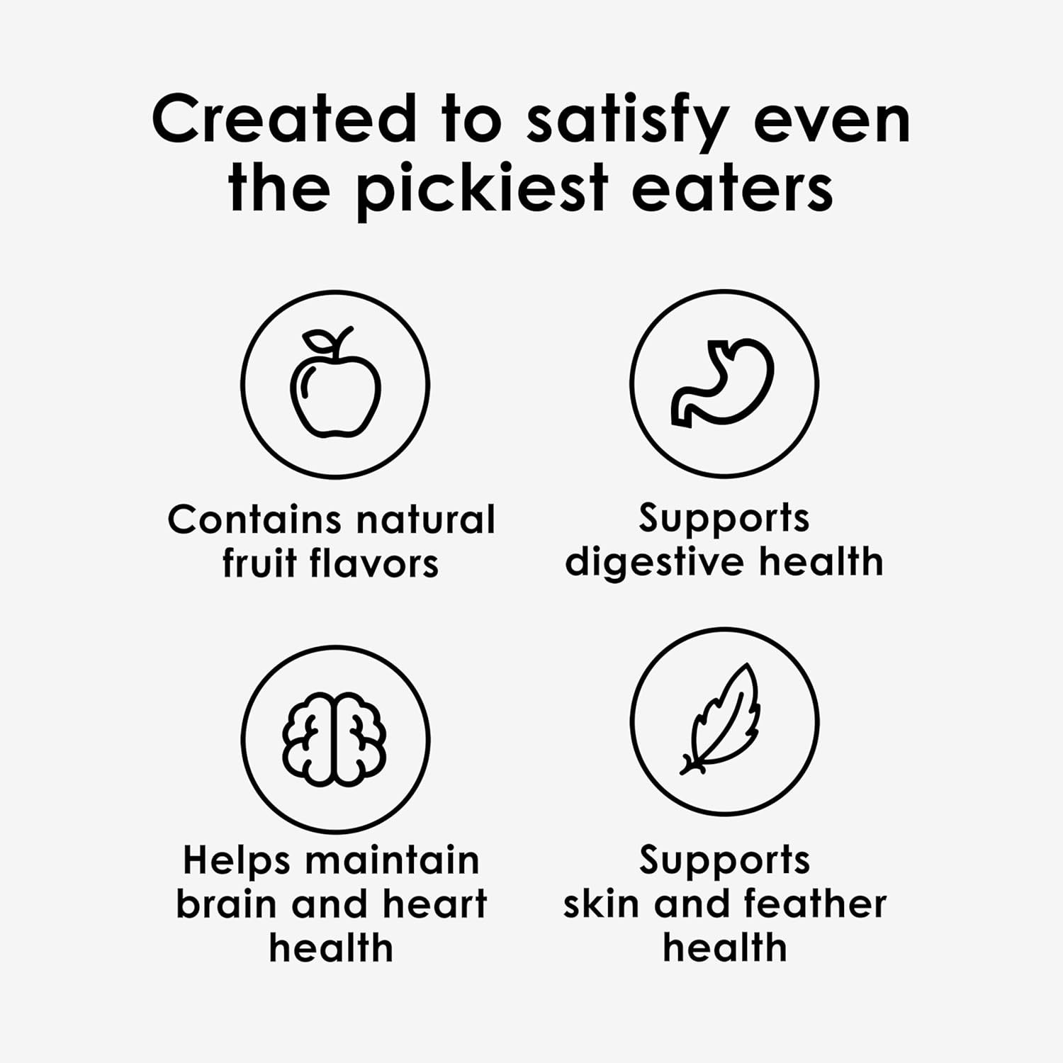 - OPTIMAL ALL-IN-ONE NUTRITION of prebiotics, probiotics, Omega-3, to support digestive, brain, skin and feather health.