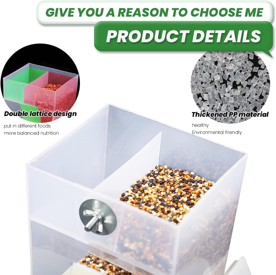 - 【Transparent Material 】 Bird Seed Storage made of high quality acrylic material, durable. The transparent design not only allows you to observe the state of your bird in 360°, but also makes it easier for you to observe the balance of food so that you can replenish it in time