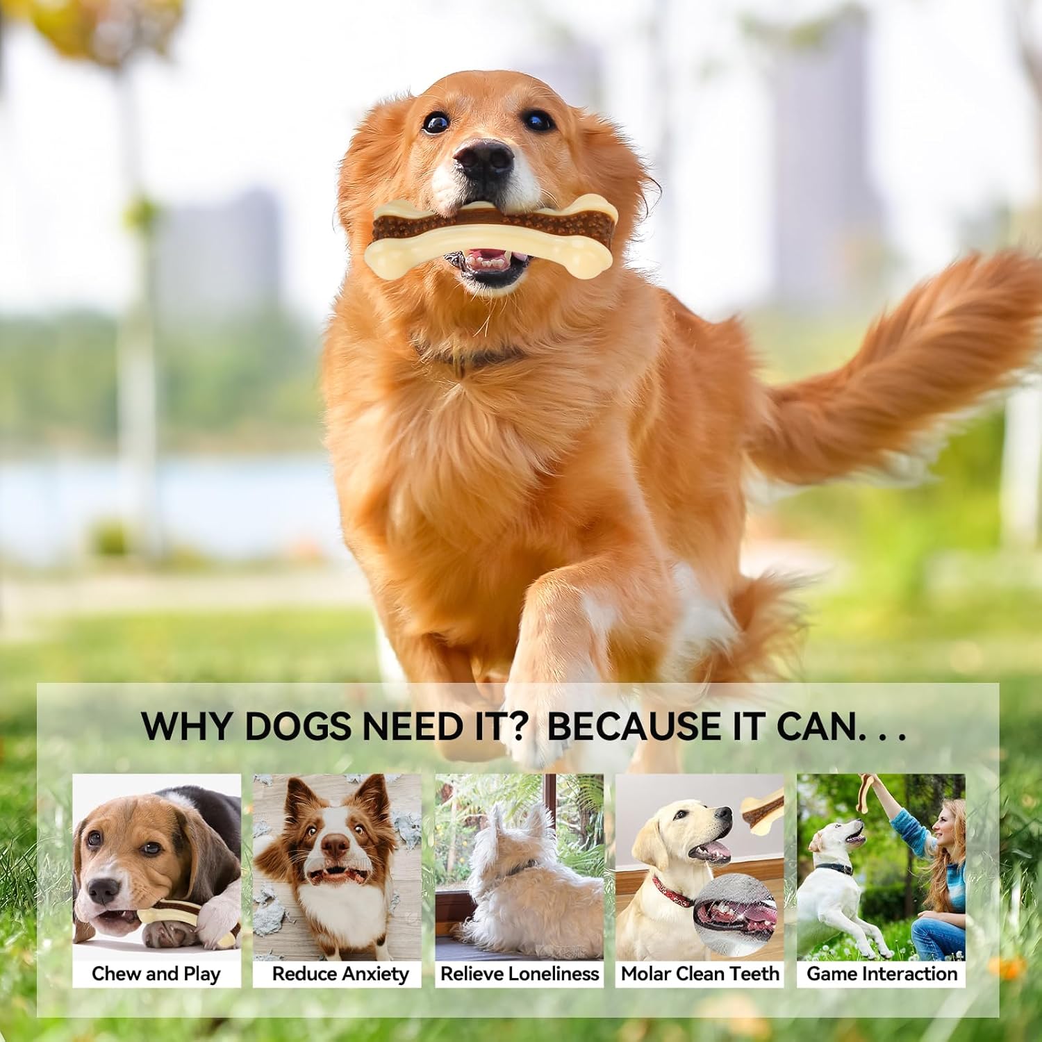 - ♫【Companion toy for many kinds of dogs】This indestructible pet toys for dogs has been chew-tested on most dog breeds, including: German Shepherds, Golden Retrievers, French Bulldogs, Labrador Retrievers, English Corgis, Huskies and more, and get loved by the dogs. Large Bone Size: 6.2*2.2 inches, Medium Bone Size: 5.3*1.9 inches. Packing Quantity: 2 Pieces