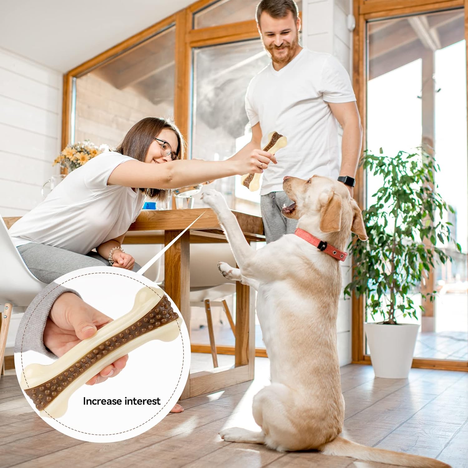 - ♫【Real beef flavor dog chew bones】This is an interactive dog toys for aggressive chewers. Does not contain rawhide, with a real beef flavor, which is more attractive to dogs and makes dogs more willing to engage in interaction or games. Such as daily indoor or outdoor obstacle training, tracking training, bite games, etc. At the same time, it can increase the tacit understanding between dogs and people and establish a good degree of trust.