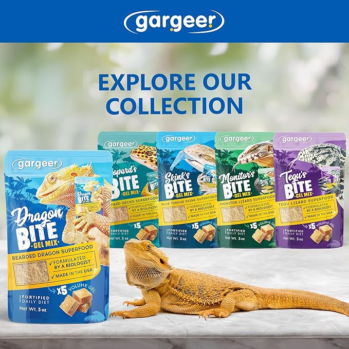 - HUNTING DRAGON. We all know some bearded dragons may be picky, and will need some encouragement getting used to a brand-new food. Let's patiently help them fall in love with Gargeer gels! We advise starting with a solid stripe you'll hand feed, using tongs/tweezers, an action that triggers their hunting instinct. A healthy fun for all parties involved!