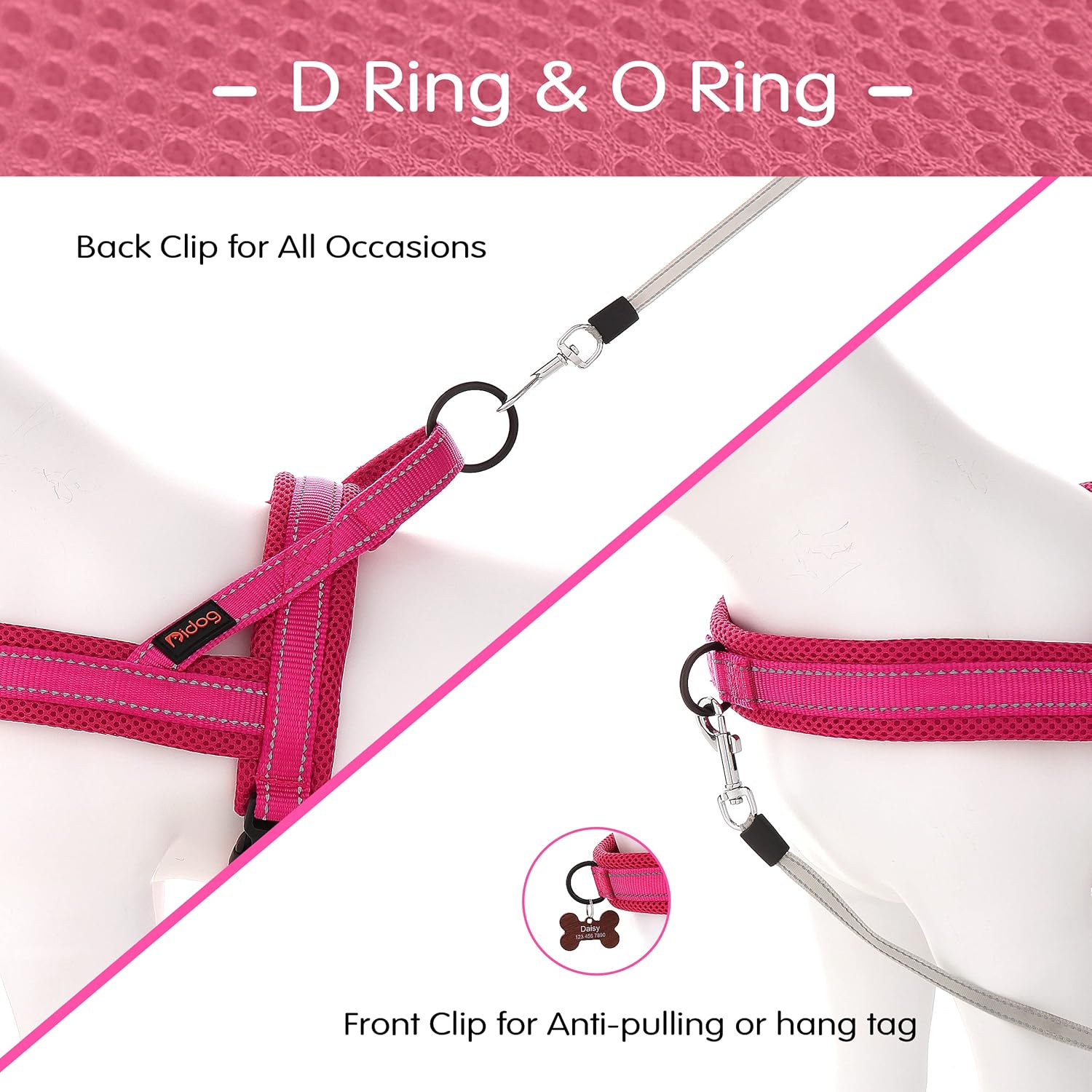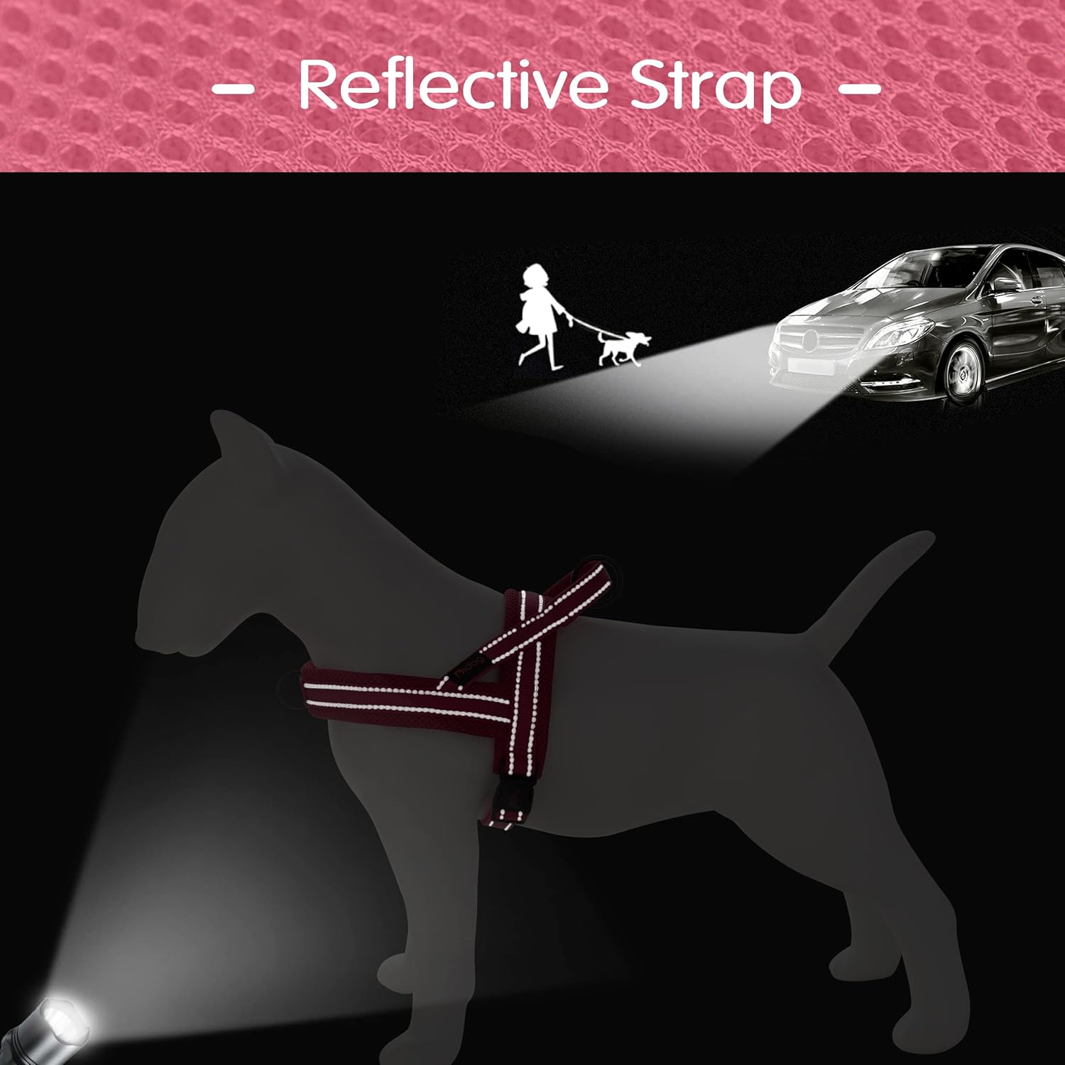 - Comfortable Wearing & Safety Walking - There are soft mesh pads beneath the straps for dog neck and back, pads are wider than straps to make sure dog comfortable feel for each pulling; 2 reflective lines along each strap is helpful to keep your dog safe for night walking;