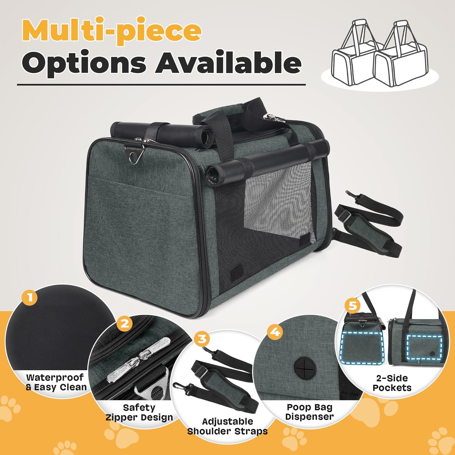 - Foldable & Safe: this cat carrier soft features foldable design for easy storage. Equipped with a secure latch, adjustable safety leash, and reflective strips, it ensures your pet’s protection during any journey. Use it daily indoors, for outings, short car trips, or airline travel (check with your airline first) to keep your pet by your side.