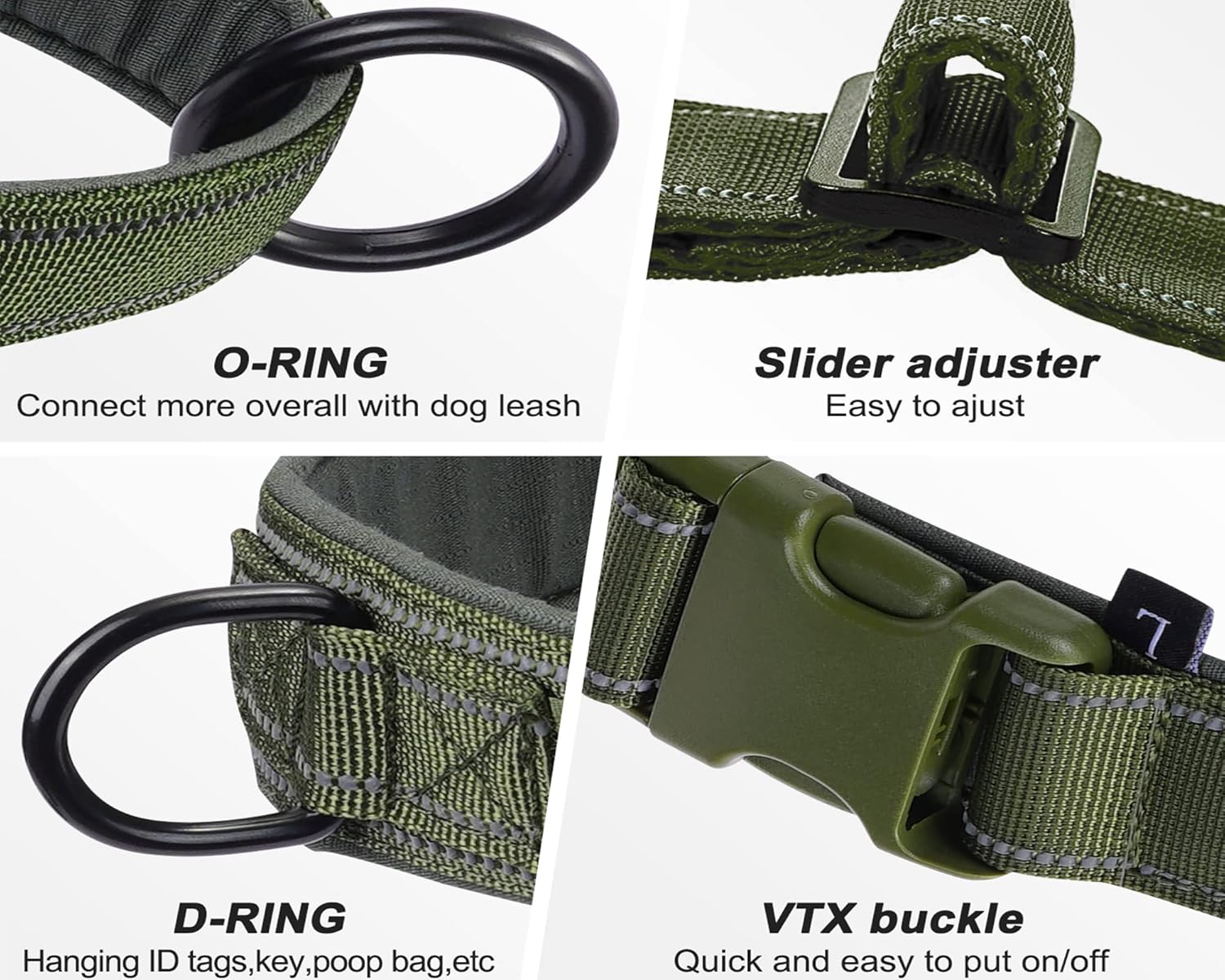 - Easily to Put ON/ OFF-The dog body harness use of VTX load-bearing buckle, simple and quick to use, cold and high temperature resistance, not easily to deform, compact structure, to prevent dogs from escaping.