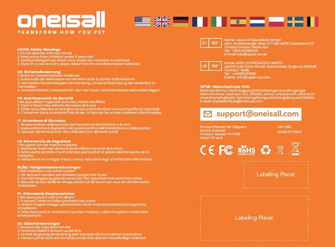 - What You Get: oneisall 7268 cat clipper, 4 guide guards (3mm/ 6mm/ 9mm/ 12mm), cleaning brush, comb, scissor, usb charger. Includes everything you need to trim your pet’s hair