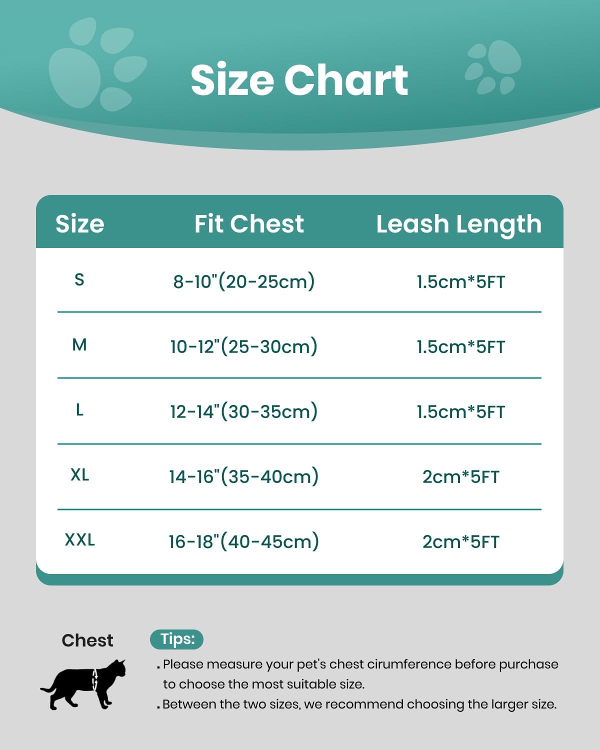 - 【One Harness, Multiple Pets|FOR CATS & SMALL DOGS】: Achieve the perfect custom fit. This versatile harness is not just for felines; its adjustable straps provide a secure and comfortable solution for small dog breeds too. For an escape-proof fit, please measure your pet's chest girth and consult our size chart before ordering